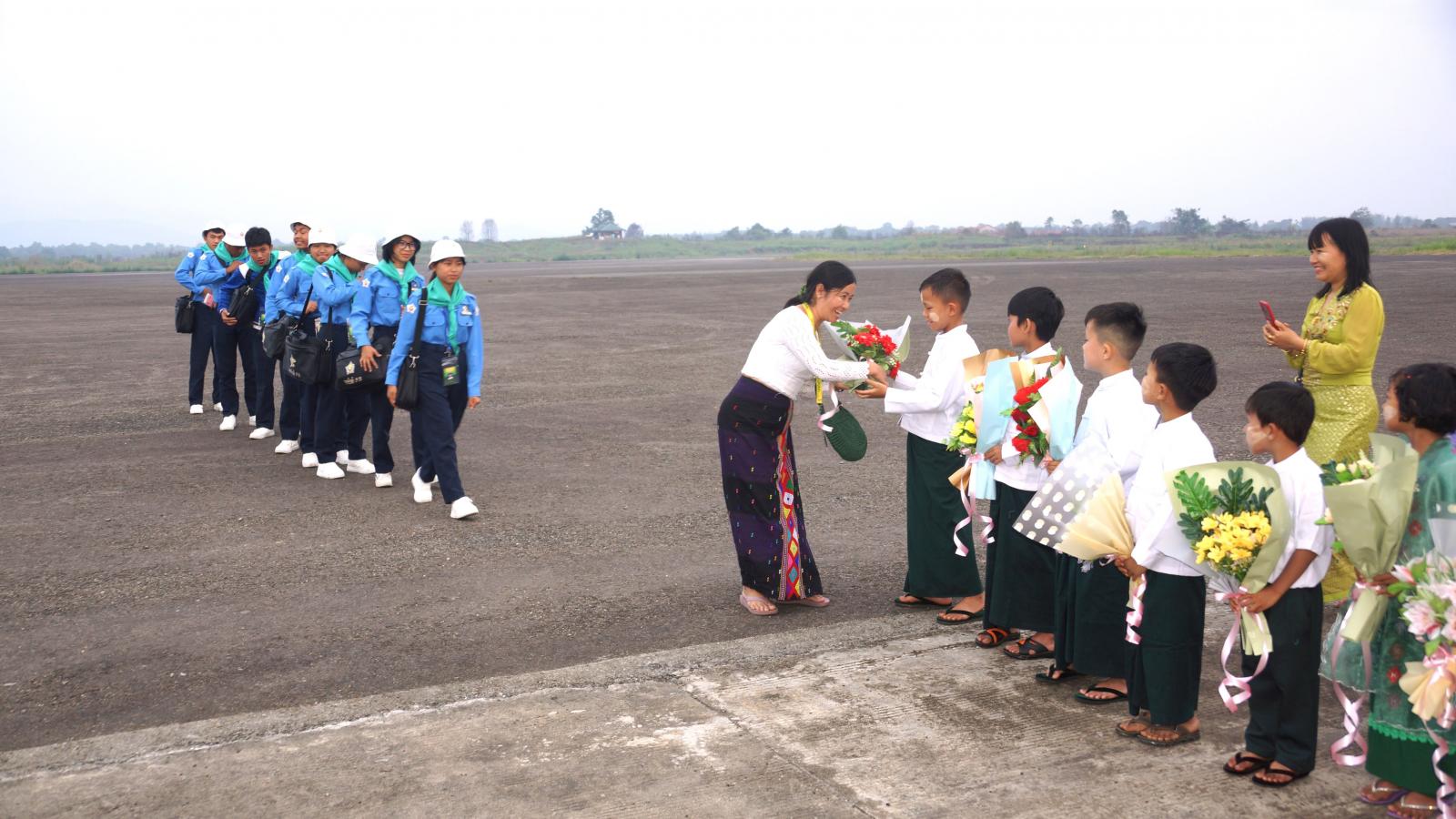 ကချင်ပြည်နယ်၊ ပူတာအိုခရိုင်မှ ၂၀၂၃-၂၀၂၄ ပညာသင်နှစ်၏ ထူးချွန်ထက်မြက်သည့် လူရည်ချွန် မောင်မယ် ကျောင်းသားကျောင်းသူများသည် လူရည်ချွန်လေ့လာရေး အပန်းဖြေစခန်းများသို့ လေ့လာရေးခရီး သွားရောက်ခဲ့ကြပြီး ယမန်နေ့ ညနေ(၆)နာရီတွင် ပူတာအိုမြို့သို့ ပြန်လည်ရောက်ရှိလာရာ ပူတာအိုလေဆိပ်၌ ခရိုင်စီမံအုပ်ချုပ်ရေးအဖွဲ့ဝင်များ၊ ခရိုင်/မြို့နယ် ဌာနဆိုင်ရာများ၊ကျောင်းသားကျောင်းသူများနှင့် မိဘအုပ်ထိန်းသူများက ဂုဏ်ပြုကြိုဆိုခဲ့ကြသည်။