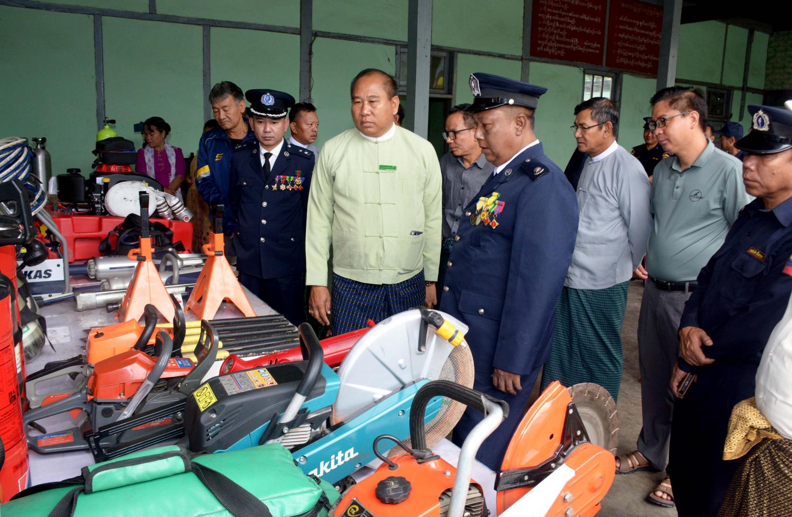 ဆက်လက်၍ (၇၈)နှစ်မြောက် မြန်မာနိုင်ငံမီးသတ်တပ်ဖွဲ့နေ့ အထိမ်းအမှတ်အဖြစ် ခရိုင်မီးသတ်ဦးစီးဌာနမှ ခေတ်မီရှာဖွေကယ်ဆယ်ရေးသုံးပစ္စည်းအမျိုးအစားများကို ခင်းကျင်းပြသထားရာ အခမ်းအနားသို့ တက်ရောက်လာကြသည့် ခရိုင်စီမံအုပ်ချုပ်ရေးအဖွဲ့ ဥက္ကဋ္ဌနှင့်အဖွဲ့ဝင်များ၊ ခရိုင်/မြို့နယ်ဌာနဆိုင်ရာများ၊ မီးသတ်သန္ဓေနှင့် အရန်မီးသတ်တပ်ဖွဲ့ဝင်များက လိုက်လံကြည့်ရှု အားပေးခဲ့ကြသည်။