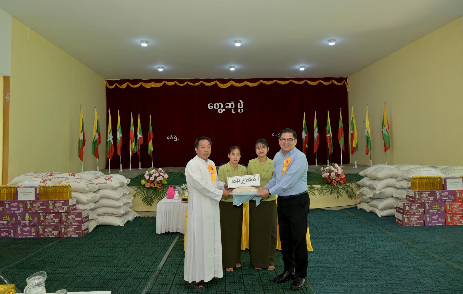 ရှေးဦးစွာ ပြည်နယ်ဝန်ကြီးချုပ်သည် ပြည်နယ်ဝန်ကြီးများဖြစ်ကြသည့် လူမှုရေးရာဝန်ကြီး ဦးမိုးမင်းသိန်း၊ တိုင်းရင်းသားရေးရာဝန်ကြီး ဦးကျော်မင်းခိုင်၊ ပြည်နယ်အဆင့်ဌာနဆိုင်ရာများ၊အမှတ် (၂၁) စစ်ဆင်ရေးကွပ်ကဲရေးကွပ်ကဲမှုဌာနချုပ်၊ စစ်ဆင်ရေးကွပ်ကဲရေးမှုး ဗိုလ်မှူးကြီး တင်မင်းလတ်၊ ခရိုင်/ မြို့နယ်စီမံအုပ်ချုပ်ရေးအဖွဲ့ဝင်များနှင့်အတူ ဗန်းမော်မြို့ RC အသင်းတော်ရုံးသို့ သွားရောက်ပြီး ဘုန်းတော်ကြီးများ၊ အသင်းတော်တာဝန်ရှိသူများနှင့် ရင်းရင်းနှီးနှီး မိတ်ဆက်တွေ့ဆုံကာ ဘုန်းတော် ကြီးအတွက် လက်ဆောင်ပန်းခြင်းနှင့် အသင်းတော်အတွက် ဆန်အိတ် (၅၀)နှင့် အသင်းတော်ပိုင် ကလေးသူငယ်ပြုစုပျိုးထောင်ရေးကျောင်းအတွက် ဆန်အိတ် (၃၀)အိတ်ကို လှူဒါန်းပေးအပ်ခဲ့သည်။
