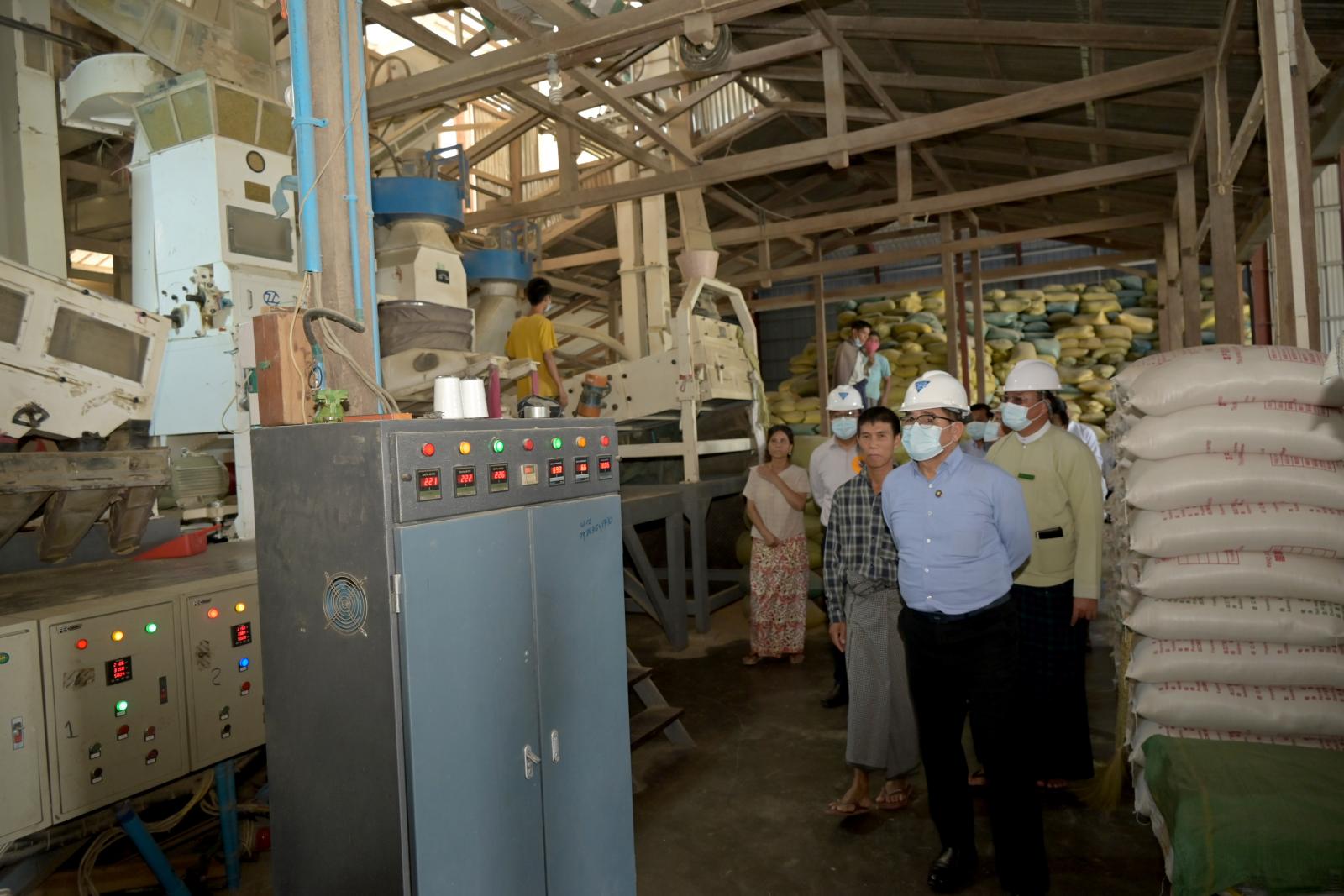 ယင်းနောက် မံဖားကျေးရွာအတွင်း ပုဂ္ဂလိကပိုင် ဖိုးရွှေလ ဆန်စက်နှင့် အခြောက်ခံစက်သို့ ရောက်ရှိပြီး ဆန်စက်လည်ပတ်ထုတ်လုပ်နေမှု အခြေအနေများနှင့် ဒေသထွက် ဆန်စပါးများအား ကြိတ်ခွဲဆောင်ရွက်နေမှု အခြေအနေများနှင့် ဈေးကွက်ရရှိမှုအခြေအနေများ၊ ပံ့ပိုးကူညီပေးရန်ကိစ္စ ရပ်များကို မေးမြန်းဆွေးနွေးခဲ့ကြသည်။