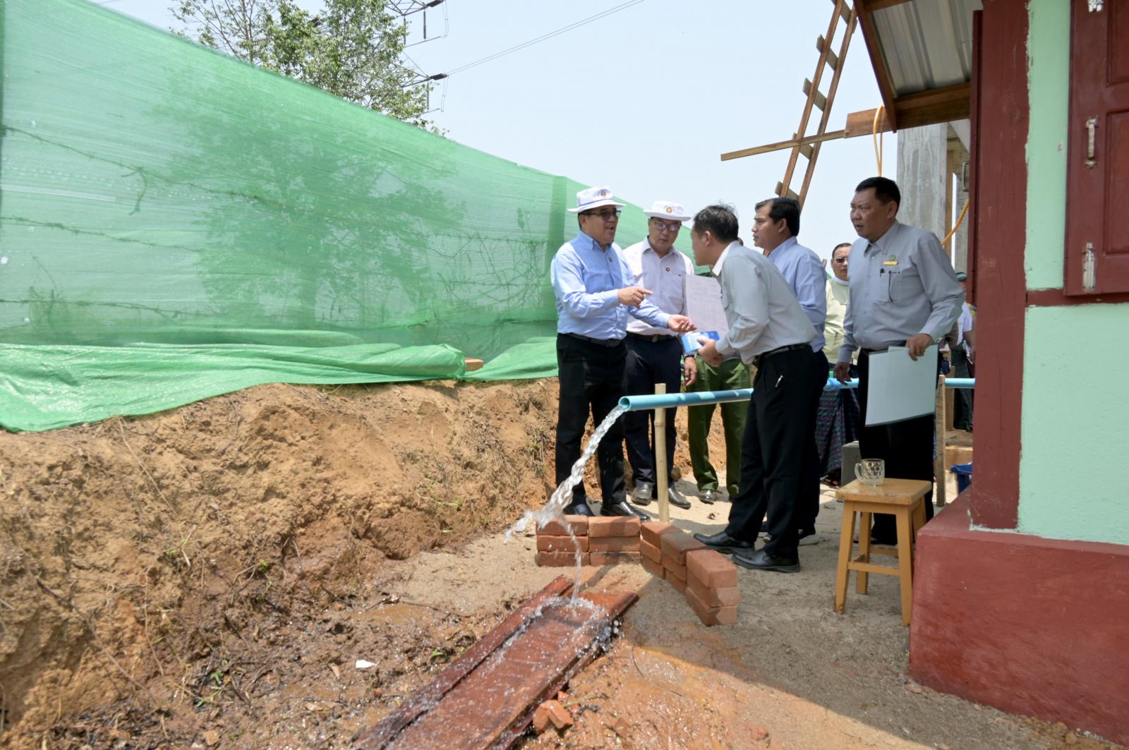 ထိုမှတစ်ဆင့် ဖိုးဒေဝ(ကွက်သစ်)အတွင်း ယာယီခိုလှုံရာစခန်းမှ ရွေ့ပြောင်းနေထိုင်ကြသည့် အိမ်ထောင်စုများအတွက် ပြည်နယ်ရန်ပုံငွေကျပ် (၃၇ ဒဿမ ၆)သန်းဖြင့် ကျေးလက်ဒေသဖွံ့ဖြိုး တိုးတက်ရေးဦးစီးဌာနက တာဝန်ယူတည်ဆောက်လျက်ရှိသည့် စက်ရေတွင်း တူးဖော်ခြင်းလုပ်ငန်း၊ ကွန်ကရစ်ရေစင် တည်ဆောက်ခြင်းလုပ်ငန်းများ ဆောင်ရွက်နေမှုကို ကြည့်ရှုစစ်ဆေးခဲ့ကြပြီး ကွက် သစ်အတွင်း မိသားစုများ၏ နေအိမ်များကို လှည့်လည်ကြည့်ရှုစစ်ဆေးခဲ့ကြသည်။