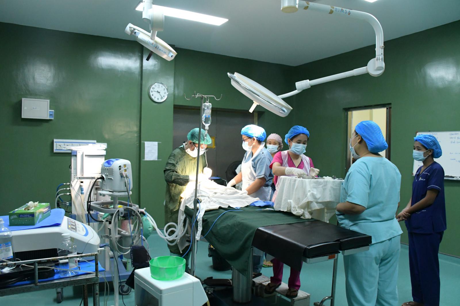 ကျန်းမာရေးဝန်ကြီးဌာန၏ အစီအစဉ်ဖြင့်ကချင်ပြည်နယ်၊ မြစ်ကြီနားမြို့ ခုတင်(၅၀၀)ဆံ့ အထွေထွေရောဂါကုဆေးရုံကြီး သွားနှင့်ခံတွင်းကုသဆောင်ရှိ ခွဲစိတ်ခန်းမကြီး၌ မေလ ၆ ရက်နေ့ နံနက်ပိုင်းမှစတင်၍ မွေးရာပါနှုတ်ခမ်းကွဲ၊ အခေါင်ကွဲလူနာများအား အခမဲ့ခွဲစိတ်ကုသပေးလျက်ရှိသည်။