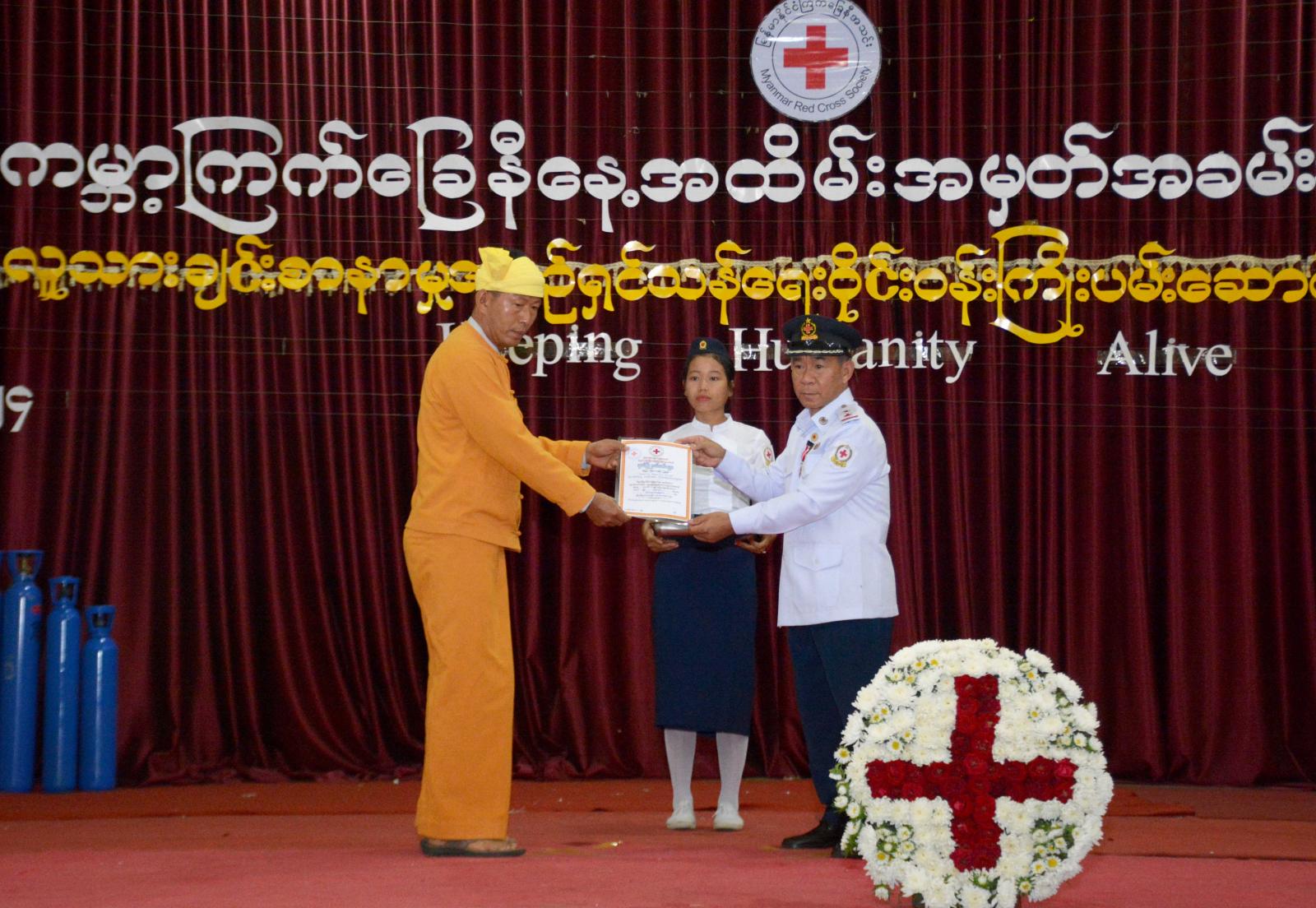 ကချင်ပြည်နယ် မိုးညှင်းခရိုင် မိုးညှင်းမြို့တွင် ကမ္ဘာ့ကြက်ခြေနီနေ့ အထိမ်းအမှတ်နှင့် ဆုရရှိကြသူများအား ဆုများချီးမြှင့်ခြင်း အခမ်းအနားကို ယနေ့နံနက် (၉) နာရီက စိမ်းလဲ့ရတနာခန်းမ၌ ကျင်းပသည်။