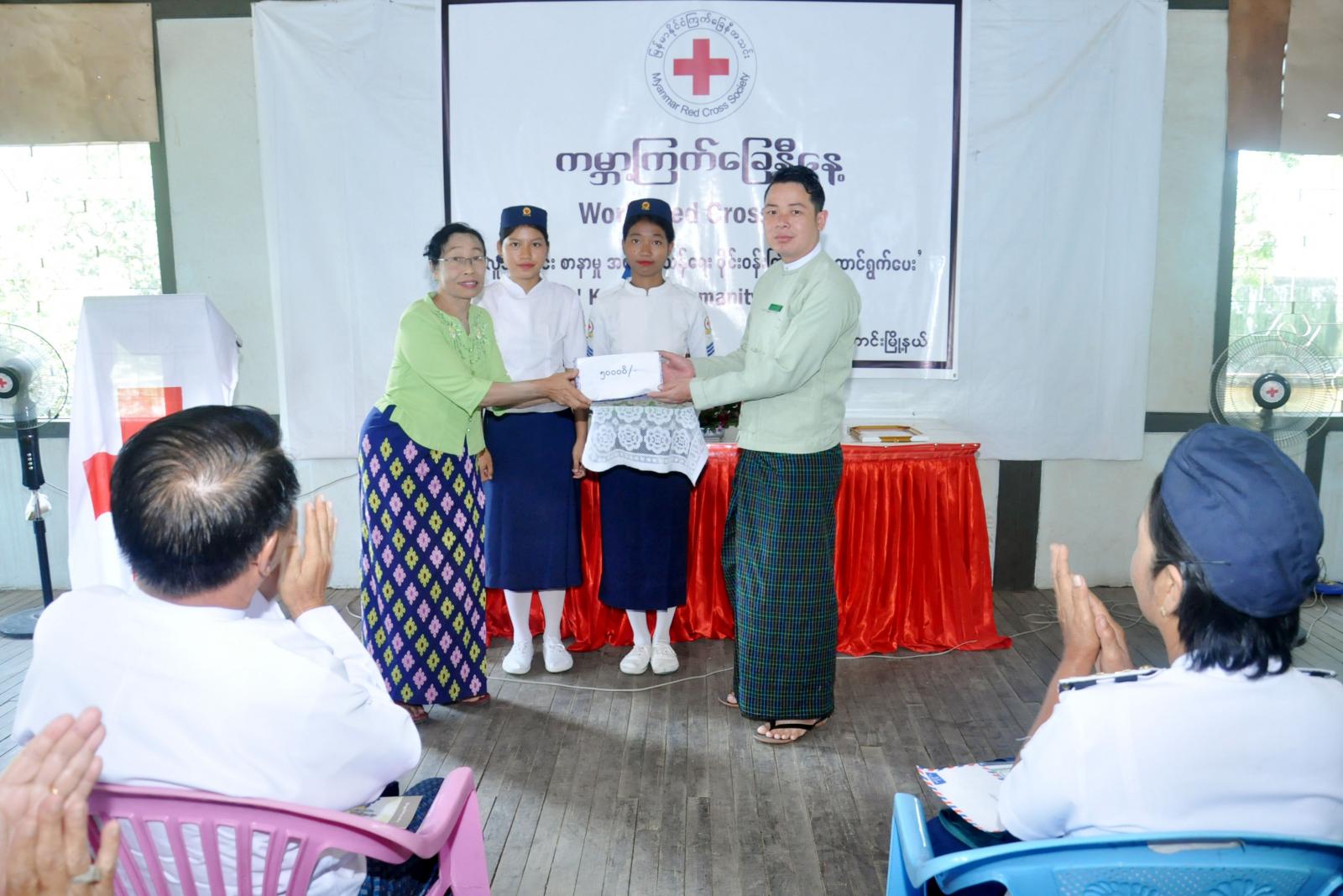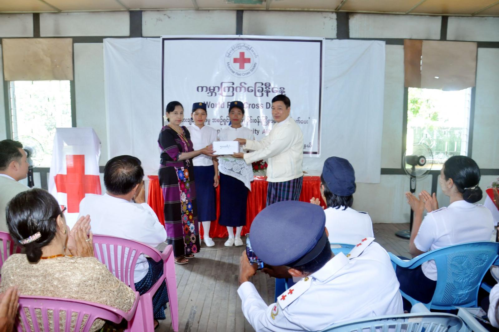 အခမ်းအနားတွင် မြန်မာနိုင်ငံကြက်ခြေနီအသင်း ဥက္ကဋ္ဌပါမောက္ခ ဒေါက်တာ မျိုးညွှန့်ထံမှ ပေးပို့သော ကြက်ခြေနီနေ့အထိမ်းအမှတ် သဝဏ်လွှာကို မြို့နယ်ကြက်ခြေနီအသင်းခွဲ ဒုတိယဥက္ကဋ္ဌ ဦးဝင်းနိုင်က ဖတ်ကြားသည်။ ဆက်လက်၍ မြို့နယ်ကြက်ခြေနီအသင်းခွဲ ဥက္ကဋ္ဌ၊ ဒုတိယဥက္ကဋ္ဌနှင့် တာဝန်ရှိသူများက တပ်ခွဲ(၂)နှင့် တပ်ခွဲ(၄)တို့မှ စွမ်းရည်ဂုဏ်ပြုဆုရရှိသူများကို ဆုချီးမြှင့်ကြသည်။