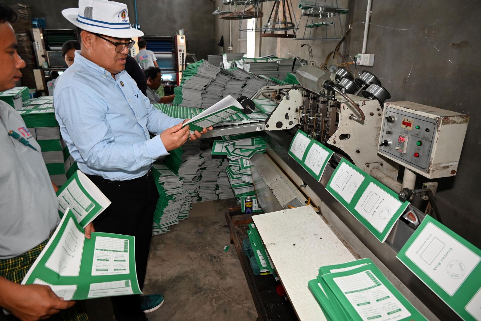 ထို့နောက် မြစ်ကြီးနားမြို့ စက်မှုဇုန်ရပ်ကွက်အတွင်းရှိ နိုင်ငံ့စီးပွားမြှင့်တင်ရေး ရန်ပုံငွေမတည်မှုဖြင့် “ဖြိုးဝေဝေ” စက္ကူနှင့် စာအုပ်ထုတ်လုပ်ရေး သမဝါယမလီမိတက်ပိုင် စက္ကူစက်ရုံ၌ ကချင်ပြည်နယ် ၏ ပထမဆုံးထုတ်ကုန်ဖြစ်သည့် နှစ်ဖက်ချောစက္ကူစက်တပ်ဆင်ပြီး လည်ပတ်ထုတ်လုပ်နေမှု အခြေအနေများကိုလည်းကောင်း၊ ထိုမှတစ်ဆင့် ဝိုင်းမော်မြို့နယ် မိုင်းနားကျေးရွာအုပ်စုအတွင်းရှိ ၎င်းတို့ပိုင် စက်ရုံ၌ ၂၀၂၄-၂၀၂၅ ပညာသင်နှစ်အတွက် ပညာရေးဝန်ကြီးဌာနမှ ပြည်နယ်အတွင်းရှိ အခြေခံပညာ ကျောင်းများအတွက် ထောက်ပံ့ပေးမည့် ကျောင်းသုံးဗလာစာအုပ်များ ထုတ်လုပ်နေမှုအခြေအနေများကို လှည့်လည်ကြည့်ရှုစစ်ဆေးခဲ့ကြသည်။