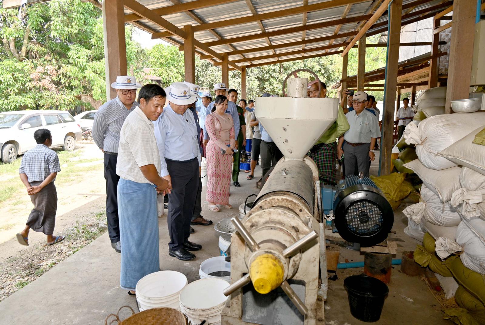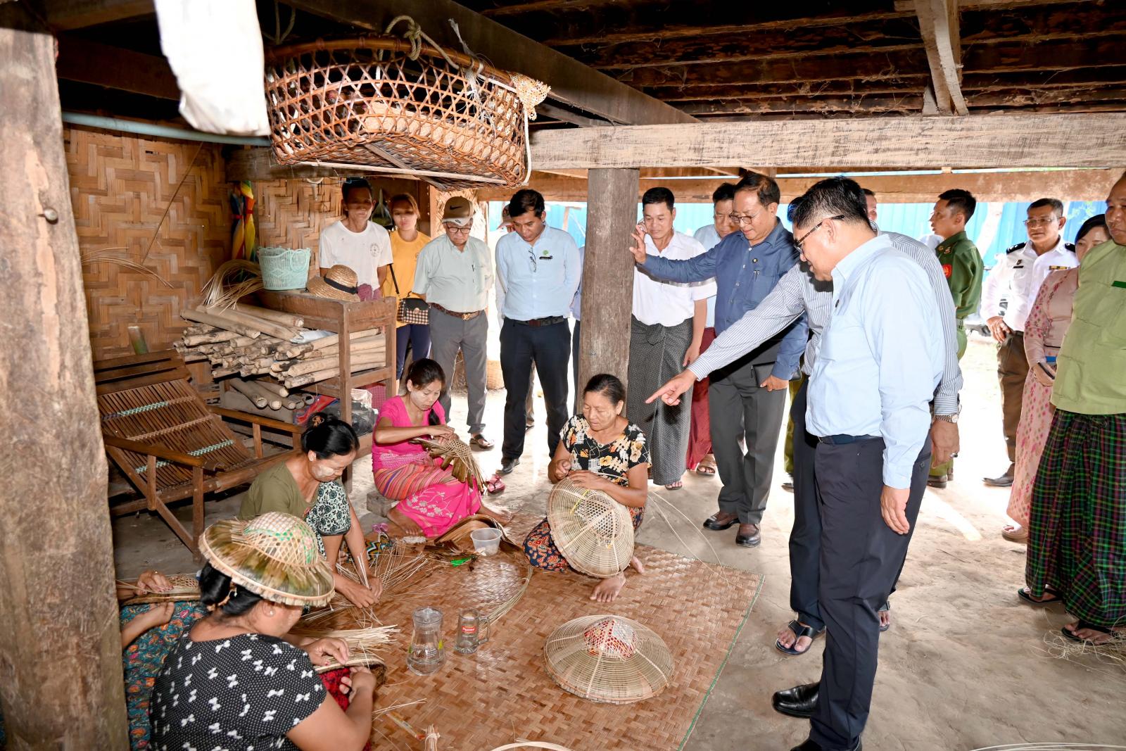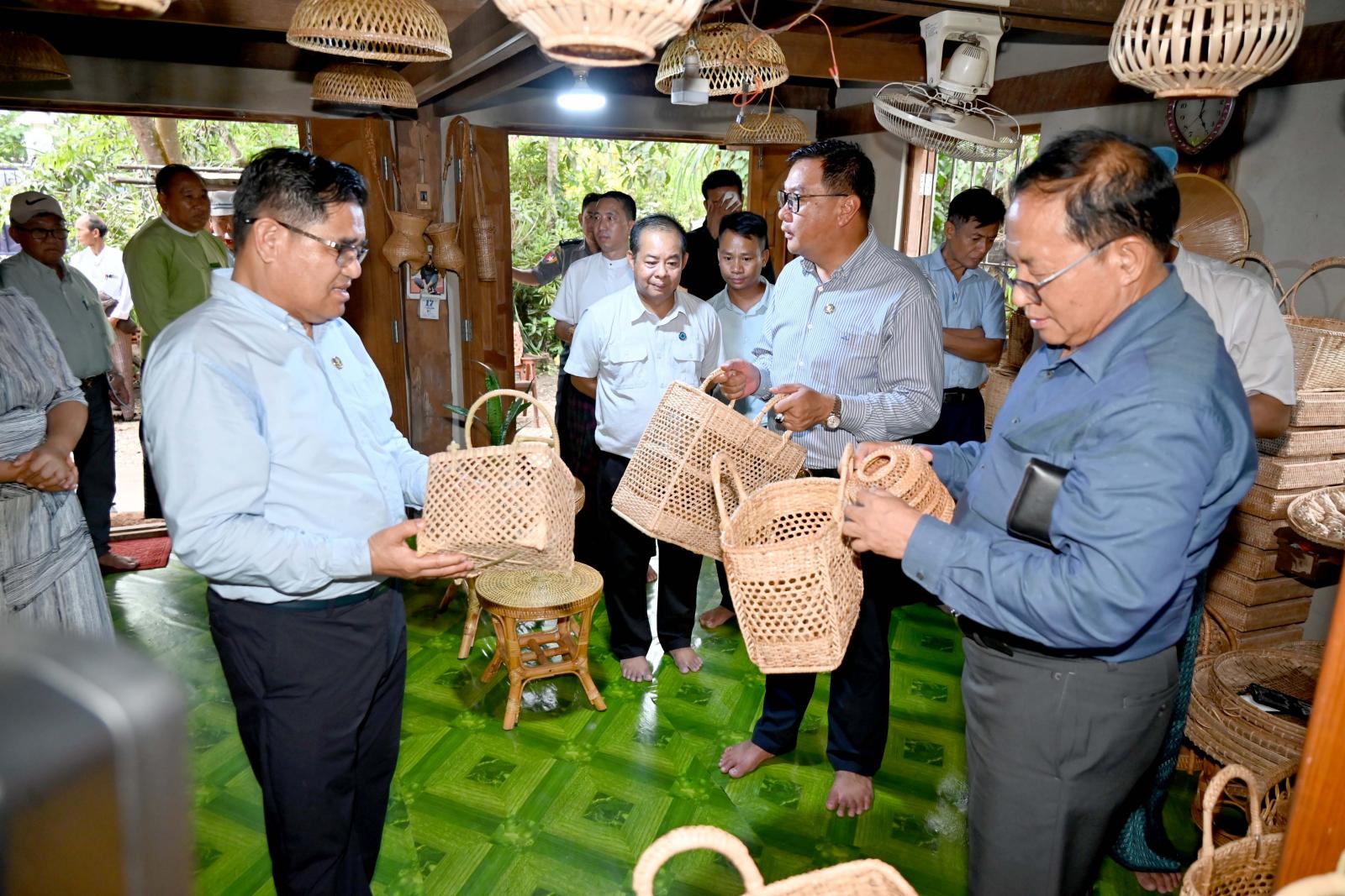 ထို့နောက် အဆိုပါရပ်ကွက်အတွင်း ပိုင်ရှင်ဦးသိန်းဝင်း၏ မိသားစုတစ်ပိုင်တစ်နိုင် စီးပွားရေး လုပ်ငန်းများဖြစ်သည့် ခမောက်လုပ်ငန်း ဆောင်ရွက်နေမှုများကို လည်းကောင်း၊ မိုးဒါးစုရပ်ကွက် အတွင်း ပိုင်ရှင်ဒေါ်စီစီ၏ တံမြက်စည်း လုပ်ငန်းဆောင်ရွက်နေမှုများကို လည်းကောင်း၊ နောင်စွန်း ရပ်ကွက်အတွင်း ပိုင်ရှင်ဦးလှမြိုင်၏ ဝါး၊ ကြိမ်ခြင်းရက်လုပ်ခြင်းလုပ်ငန်း ဆောင်ရွက်နေမှုများကို လည်းကောင်း၊ ထိုမှတစ်ဆင့် နားခါရပ်ကွက်၊ ရန်ကင်းရပ်ရှိ ပိုင်ရှင်ဦးထွန်းဖေ၏ ဝါး၊ ကြိမ်ပစ္စည်းများ အသုံးပြု၍ လူသုံးကုန်ပစ္စည်းအမျိုးမျိုးထုတ်လုပ်မှုလုပ်ငန်း ဆောင်ရွက်နေမှုများကိုလည်းကောင်း၊ ပိုင်ရှင် ဦးထွန်းထွန်း၏ ဝါးခမောက် လုပ်ငန်းဆောင်ရွက်နေမှုများကို လည်းကောင်း လှည့်လည်ကြည့်ရှုစစ်ဆေးခဲ့ကြပြီး မိသားစုတစ်ပိုင်တစ်နိုင် စီးပွားရေးလုပ်ငန်းများ ပိုမိုအကျိုးဖြစ်ထွန်းစေရေး အတွက် ဈေးကွက်ရရှိမှု အခြေအနေများ၊ နိုင်ငံ့စီးပွားမြှင့်တင်ရေး ရန်ပုံငွေဖြင့် ရင်းနှီးမတည်ငွေ ပံ့ပိုးပေးနိုင်ရေးတို့အတွက် ဆွေးနွေးဆောင်ရွက်ခဲ့ကြသည်။