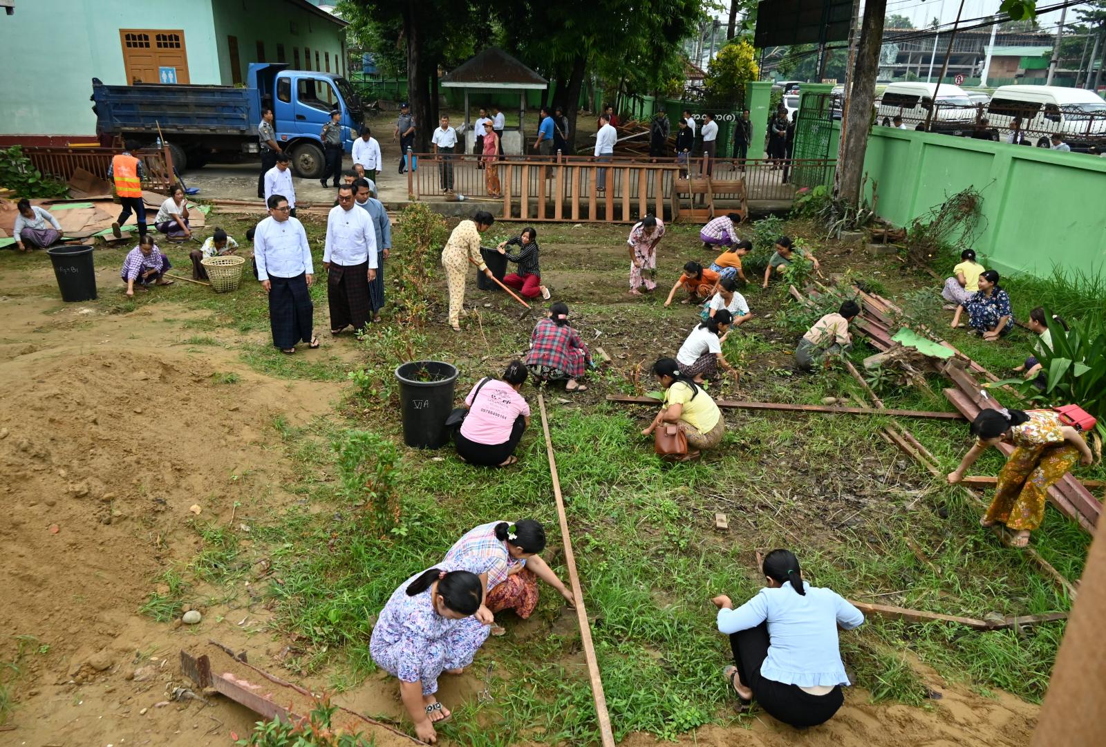 ထိုသို့ ဆောင်ရွက်ခြင်းကို ပြည်နယ်ဝန်ကြီးချုပ် ဦးခက်ထိန်နန်၊ ပြည်နယ်တရားလွှတ်တော်တရားသူကြီးချုပ်၊ ပြည်နယ်အစိုးရအဖွဲ့ဝင် ဝန်ကြီးများ၊ ပြည်နယ်ဥပဒေချုပ်တို့သည် ကျောင်းဝင်းအတွင်း ပြည်နယ်ပညာရေးမှူး၊ ကျောင်းအုပ်နှင့် သင်ကြားရေး ဆရာ/ ဆရာမများက အမှတ (၈) အခြေခံပညာအထက်တန်းကျောင်းဝင်းအတွင်း စာသင်ဆောင်များအကြားရှိ သစ်ပင်ချုံနွယ်များအား ခုတ်ထွင်ရှင်းလင်းပေးခြင်း၊ မြက်နှင့် အမှိုက်များ ရိပ်သိမ်းပေးခြင်း၊ ရေမြောင်းများ ရေစီးရေလာကောင်းမွန်အောင် ပြန်လည်တူးဖော်ဆောင်ရွက်ပေးခြင်းများ ဆောင်ရွက်နေမှုကို လှည့်လည်ကြည့်ရှုအားပေးခဲ့ကြပြီး ကျောင်းဖွင့်ချိန်အမီ ကျောင်းဥပဓိရုပ်ကောင်းမွန်ရေး၊ ခြင်၊ ယင်အန္တရာယ်ကင်းဝေးရေးကို အလေးထားလုပ်ဆောင်နိုင်ရေးနှင့် လိုအပ်သည်များကို ညှိနှိုင်းပေါင်းစပ်ဆောင်ရွက်ပေးခဲ့သည်။