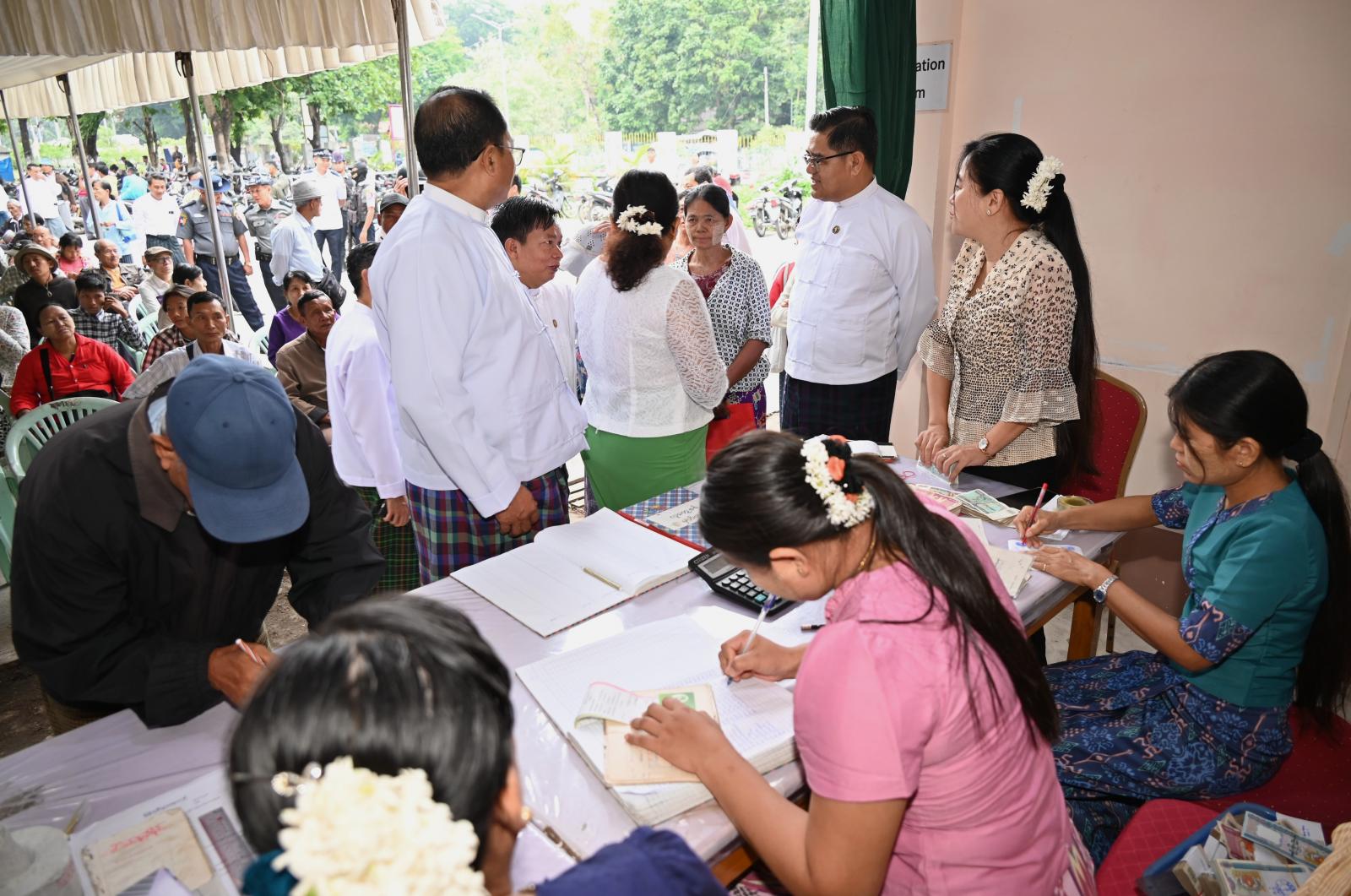 ထို့မှတစ်ဆင့် ပြည်နယ်ဝန်ကြီးချုပ်နှင့် အဖွဲ့ဝင်များသည် ပြည်သူ့ဆေးရုံဝင်းအတွင်း အငြိမ်းစားနိုင်ငံ့ဝန်ထမ်းကြီးများအား ပဉ္ဇမအကြိမ်အဖြစ် အငြိမ်းစားပင်စင် လစာထုတ်ပေးခြင်းနှင့် အခမဲ့ ကျန်းမာရေးစောင့်ရှောက်မှုလုပ်ငန်းများ ဆောင်ရွက်ပေးလျက်ရှိသည့် မြစ်ကြီးနားမြို့ ကုတင်-၅၀၀ ဆံ့ ပြည်သူ့ဆေးရုံသို့ သွားရောက်ပြီး ရှေးဦးစွာ ပင်စင်လစာလာရောက်ထုတ်ယူသည့် အငြိမ်းစားဝန်ထမ်းကြီးများနှင့် မိသားစုများအတွက် ပြင်ပပေါက်ဈေးထက် ဈေးနှုန်းချိုသာသည့် ဆန်နှင့် အသား/ ငါးများအား အခွန်လွတ် ဈေးဆိုင်ငယ်ဖွင့်လှစ်ရောင်းချပေးနေမှုများ၊ စနစ်တကျ စီတန်းဝယ်ယူနေမှုများကို ကြည့်ရှုအားပေးခဲ့ကြပြီး ပင်စင်လစာထုတ်ယူရန် လာရောက်ကြသည့် အငြိမ်းစားဝန်ထမ်းကြီးများအား အထွေထွေအုပ်ချုပ်ရေးဦးစီးဌာနဝန်ထမ်းများက နံနက်စာဖြင့် ဧည့်ခံကျွေးမွေးခြင်း၊ မြန်မာ့စီးပွားရေးဘဏ်မန်နေဂျာနှင့် ဘဏ်ဝန်ထမ်းများက ပင်စင်လစာများ စနစ်တကျထုတ်ပေးခြင်း၊ ဆေးရုံအုပ်ကြီးနှင့် အထူးကုဆရာဝန်များ၊ ကျန်းမာရေးဝန်ထမ်းများက အငြိမ်းစာသက်ကြီး ဝန်ထမ်းများအား ကျန်းမာရေးစစ်ဆေးပြီး ကုသပေးခြင်း၊ ဆေးဝါးများ အခမဲ့ပေးခြင်းနှင့် ကိုဗစ်-၁၉ ကာကွယ်ဆေးထိုးနှံပေးခြင်း စသည့် လုပ်ငန်းများ ဆောင်ရွက်ပေးနေမှုများကို လှည့်လည်ကြည့်ရှုအားပေးခဲ့ကြပြီး အငြိမ်းစားဝန်ထမ်းများအား ရင်းရင်းနှီးနှီး လိုက်လံနှုတ်ဆက်အားပေးခဲ့ကြသည်။