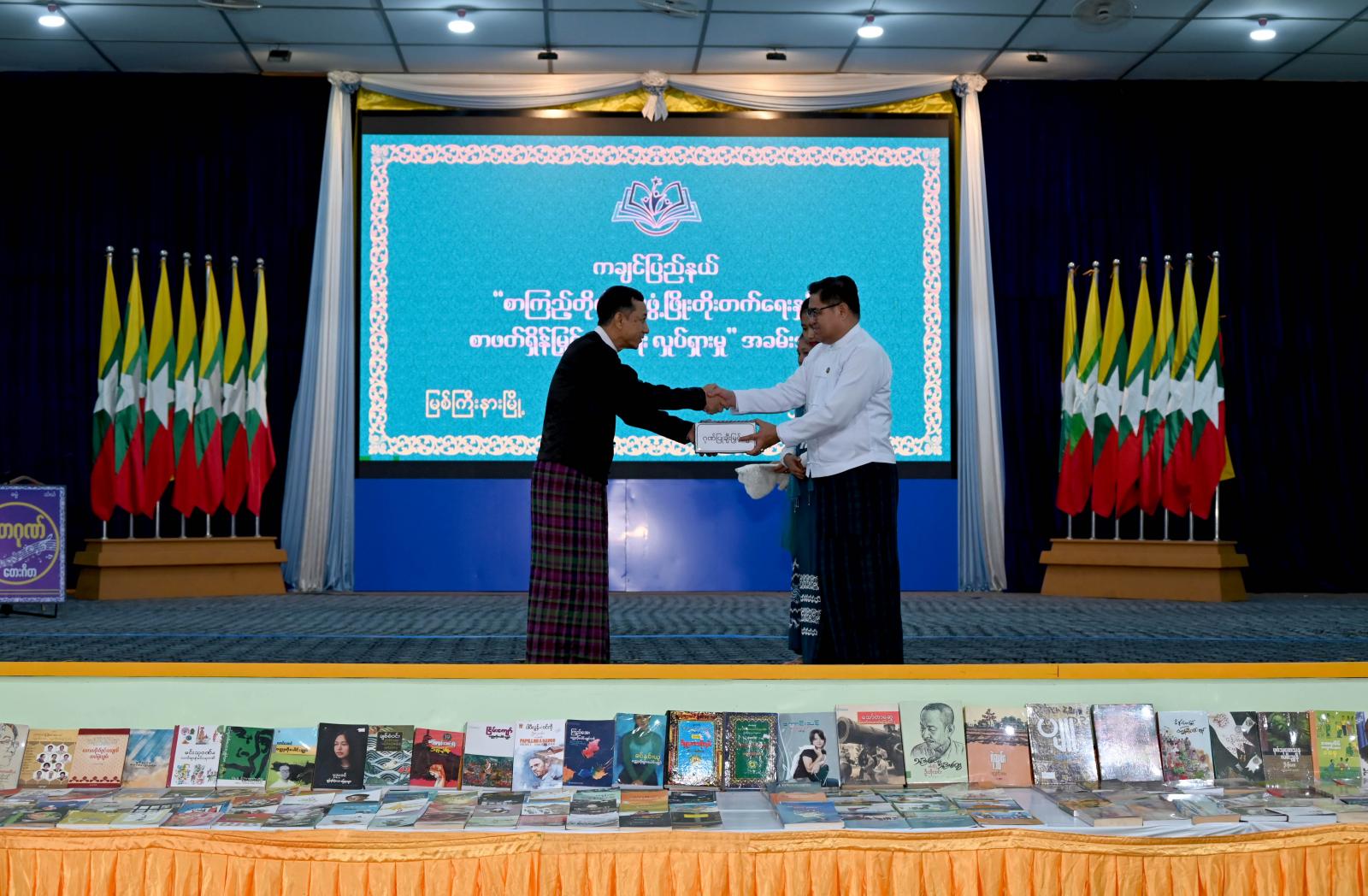 ထို့နောက် ကျောင်းသား/ကျောင်းသူလေးများက“ဘက်စုံပညာကိုရည်တို့လှမ်းချီ” တေးသီချင်းဖြင့် သီဆိုဖျော်ဖြေခဲ့ကြပြီး ပြည်နယ်ဝန်ကြီးချုပ်၊ ပြည်နယ်တရားလွှတ်တော်တရားသူကြီးချုပ်နှင့် ဇနီး၊ ပြည်နယ်အစိုးရအဖွဲ့ဝင် ဝန်ကြီးများနှင့် ၎င်းတို့၏ ဇနီးများ၊ ပြည်နယ်/ခရိုင်/ မြို့နယ်အဆင့် ဌာန ဆိုင်ရာများ၊ စာရေးဆရာများအသင်းမှ တာဝန်ရှိသူများ၊ ပြည်နယ်အမျိုးသမီးရေးရာအဖွဲ့နှင့် မိခင်နှင့် ကလေးစောင့်ရှောက်မှုကြီးကြပ်ရေးအဖွဲ့ဝင်များ၊ ပညာရေးဒီဂရီကောလိပ်နှင့် သူနာပြုသားဖွား သင်တန်းကျောင်းများမှ သင်တန်းသား/သင်တန်းသူများ၊ အခြေခံပညာ ကျောင်းသား/ကျောင်းသူ လေးများက ပြန်ကြားရေးနှင့်ပြည်သူ့ဆက်ဆံရေးဦးစီးဌာနက စာဖတ်ရှန်မြှင့်တင်ရေးလှုပ်ရှားမှုအဖြစ် ခင်းကျင်းပြသထားသည့် သုတ/ ရသ စာအုပ်စာစောင်များ၊ မဂ္ဂဇင်း၊ ဂျာနယ်များ၊ ကလေးစာပေများ ခင်းကျင်းပြသထားမှုနှင့် နယ်လှည့်စာကြည့်တိုက်တို့အား လှည့်လည်ကြည့်ရှုအားပေးခဲ့ကြသည်။