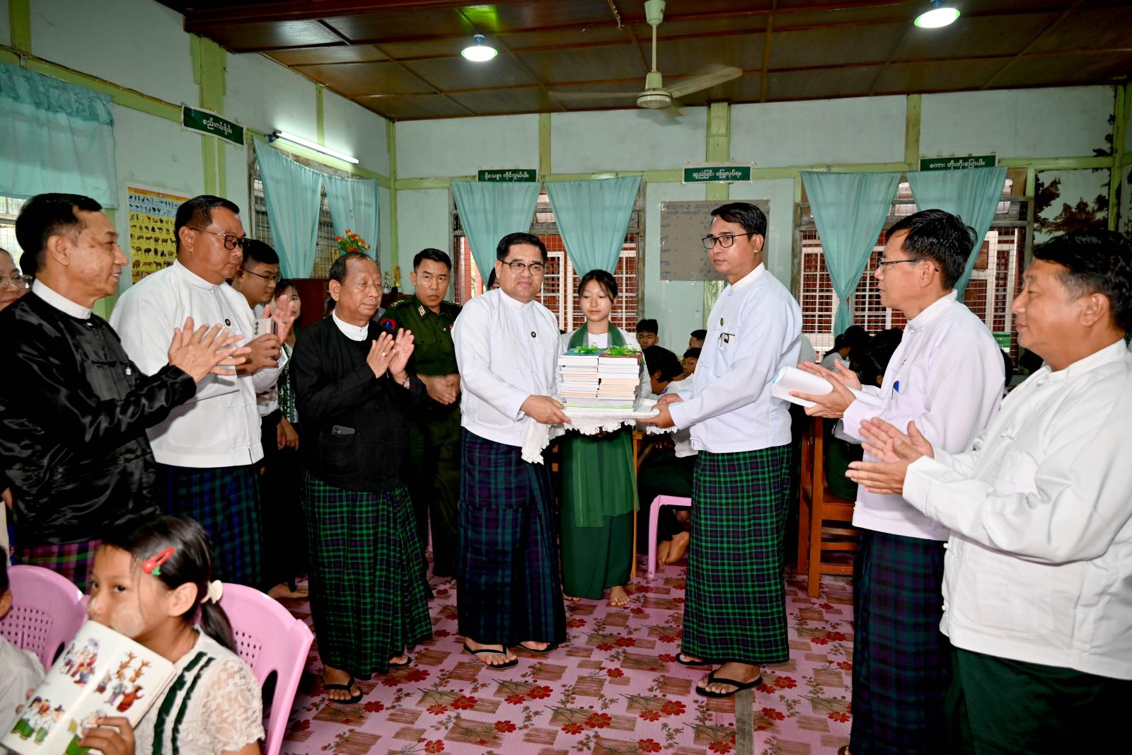 ထို့နောက် ပြည်နယ်ဝန်ကြီးချုပ်နှင့် အဖွဲ့ဝင်များသည် မြစ်ကြီးနားမြို့ အမှတ်(၁)အခြေခံပညာ အထက်တန်းကျောင်းအတွင်း ကျောင်းစာကြည့်တိုက်တစ်ခုဖြစ်သည့် သုတရတနာ စာကြည့်တိုက်သို့ သွားရောက်ပြီး ကျောင်းစာကြည့်တိုက်အတွင်း သုတ/ရသ စာအုပ်စာစောင်များအား စုစောင်းထားရှိမှု၊ ကျောင်းသား/ကျောင်းသူများ၏ စာပေဖတ်ရှုလေ့လာနေမှုတို့ကို လှည့်လည်ကြည့်ရှုစစ်ဆေးခဲ့ကြကာ ပြည်နယ်ဝန်ကြီးချုပ်က ကျောင်းစာကြည့်တိုက်အတွက် ရန်ပုံငွေကျပ် (၁၀)သိန်းနှင့် စာအုပ်စာစောင် များ၊ ပြည်နယ်စာကြည့်တိုက်များဖောင်ဒေးရှင်းက ငွေကျပ် (၂)သိန်းတန်ဖိုးရှိ စာအုပ်စာစောင်များကို ပေးအပ်လှူဒါန်းခဲ့ကြသည်။