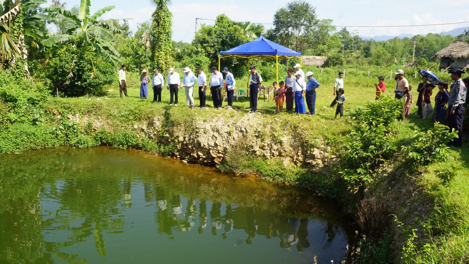 ထို့နောက် ပြည်နယ်ဝန်ကြီးနှင့်အဖွဲ့ဝင်များသည် မချမ်းဘောမြို့နယ် နမ်ခမ်ကျေးရွာအတွင်း နိုင်ငံ့စီးပွားမြှင့်တင်ရေးမတည်ရန်ပုံငွေဖြင့် ငါးမွေးမြူရေး တောင်သူဦးဖေရမ်နော်အွန်၏ ငါးမွေးမြူရေး(၂)ကန်တွင် ငါးခုံးမကောင်ရေပေါင်း (၄၀၀၀၀)မွေးမြူထားရှိမှု၊ တောင်သူ ဒေါ်နင်ဆားရ်၏ ငါးမွေးမြူရေးကန်တွင် ငါးခုံးမကောင်ရေပေါင်း(၂၀၀၀၀)မွေးမြူထားရှိမှု၊ တောင်သူ ဦးရမ်ဆားရ်၏ ငါးမွေးမြူရေးကန်(၂)ကန်တွင် ငါးခုံးမကောင်ရေပေါင်း (၄၀၀၀၀) မွေးမြူထားရှိမှုများကို လှည့်လည်ကြည့်ရှုစစ်ဆေးခဲ့ကြသည်။