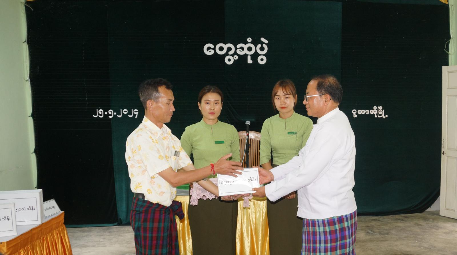 ဆက်လက်၍ ပြည်နယ်ဝန်ကြီးက ပူတာအိုနှင့် မချမ်းဘောမြို့နယ်များမှ ငါးမွေးမြူရေး တောင်သူအစုအဖွဲ့ (၄)ဖွဲ့အတွက် မတည်ရန်ပုံငွေကျပ်သိန်းပေါင်း (၁၂၀၀)ကိုလည်းကောင်း၊ ပြည်နယ်ငါးလုပ်ငန်းဦးစီးဌာန ပြည်နယ်ဦးစီးမှူး ဦးစောအောင်ရဲထွဋ်လွင်က ပူတာအိုမြို့နယ်မှ ငါးမွေးမြူရေးတောင်သူအစုအဖွဲ့(၂)ဖွဲ့အတွက် မတည်ရန်ပုံငွေကျပ်သိန်းပေါင်း (၅၀၀၀) ကိုလည်းကောင်း၊ ပြည်နယ်စိုက်ပျိုးရေးဦးစီးဌာန ဒုတိယပြည်နယ်ဦးစီးမှူး ဦးအောင်လွင်ဦးနှင့် ပြည်နယ်မွေးမြူရေးနှင့်ကုသရေးဦးစီးဌာန ပြည်နယ်ဦးစီးမှူး ဒေါက်တာ သန်းအေးတို့က ပူတာအိုမြို့နယ် မန်စေကျေးရွာအုပ်စု၊ ရေခဲတောင်သွားလမ်းပေါ်ရှိ ဇီယာဒမ်း၊ ခါးလန်၊ လုံးနဒမ်း၊ ဝမ်လိုင်ဒမ်း၊ အဝပ်ဒမ်းကျေးရွာများအတွက် ရှောက်ကောနှင့် အလေချီပင်များ တိုးချဲ့စိုက်ပျိုးနိုင်ရန် မတည်ရန်ပုံငွေကျပ်သိန်းပေါင်း(၃၀၀)နှင့် ကြက်/ ဝက်များ စီးပွားဖြစ်မွေးမြူနိုင်ရေး မတည်ရန်ပုံငွေကျပ်သိန်း ပေါင်း (၂၅၀)ကိုလည်းကောင်း အသီးသီးပေးအပ်ခဲ့ကြကြောင်း သိရသည်။