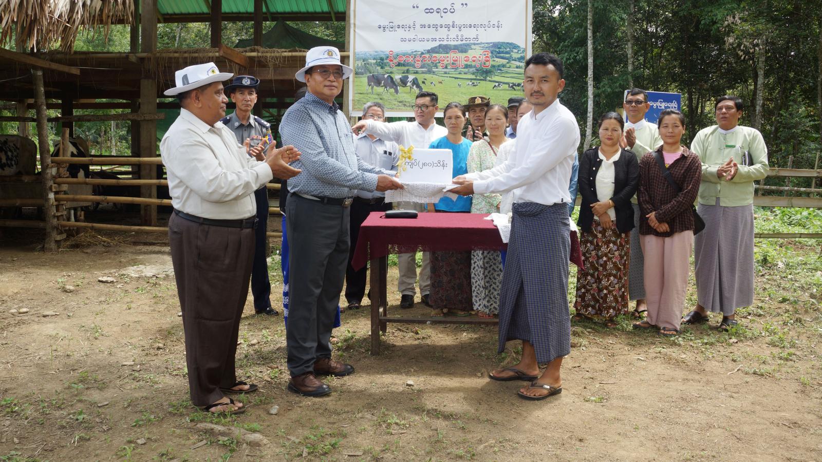 ထို့နောက် ပြည်နယ်ဝန်ကြီးသည် ပူတာအိုမြို့ ဒုတ္ထန်ရပ်ကွက်အတွင်း နိုင်ငံ့စီးပွားမြှင့်တင်ရေး ရန်ပုံငွေဖြင့် ပိုင်ရှင်ဦးဇာမဲဒီး၏ “ထရဝပ်” မွေးမြူရေးနှင့်အထွေထွေစီးပွားရေးလုပ်ငန်း သမဝါယမအသင်း လိမီတက်ပိုင် နို့စားနွားမွေးမြူရေးခြံသို့ သွားရောက်ပြီး ခြံလှောင်စနစ်ဖြင့် နို့စားနွားကောင်ရေ (၁၅) ကောင်၊ ဒေသနွားကောင်ရေ(၃၀)၊ ဒေသကျွဲ(၈)ကောင် မွေးမြူထားရှိမှု အခြေအနေများကို ကြည့်ရှုစစ်ဆေးကာ ဒေသတွင်းစံပြနွားမွေးမြူရေးလုပ်ငန်းအဖြစ် ဆက်လက်ရပ်တည်လုပ်ကိုင်နိုင်ရေး၊ နို့စားနွားကောင်ရေတိုးချဲ့ မွေးမြူရေးအတွက် လိုအပ်သည်များကို ပံ့ပိုးကူညီပေးနိုင်ရေး ညှိနှိုင်းဆွေးနွေးခဲ့ကြကာ ပြည်နယ်ဝန်ကြီးနှင့် ပူတာအိုတပ်နယ်မှူးတို့က စွမ်းအားမြှင့်ရောစပ်အစာမှုန့်များနှင့် မွေးမြူရေး အထောက်အကူပြုဆေးဝါးများ၊ မြို့နယ်သမဝါယမဦးစီးဌာနမှ နိုင်ငံ့စီးပွားမြှင့်တင်ရေးရန်ပုံငွေမှ ငွေကျပ်သိန်းပေါင်း (၂၈၀)တို့ကို ထောက်ပံ့ပေးအပ်ခဲ့ကြပြီး ပြည်နယ်ဦးစီးမှူး ဒေါက်တာသန်းအေးက စွမ်းအားမြှင့် ရောစပ်အစာမှုန့်များနှင့်မွေးမြူရေး အထောက်အကူပြု ဆေးဝါးများအသုံးပြုပုံများကို လက်တွေ့သရုပ်ပြ အသိပညာပေးခဲ့သည်။