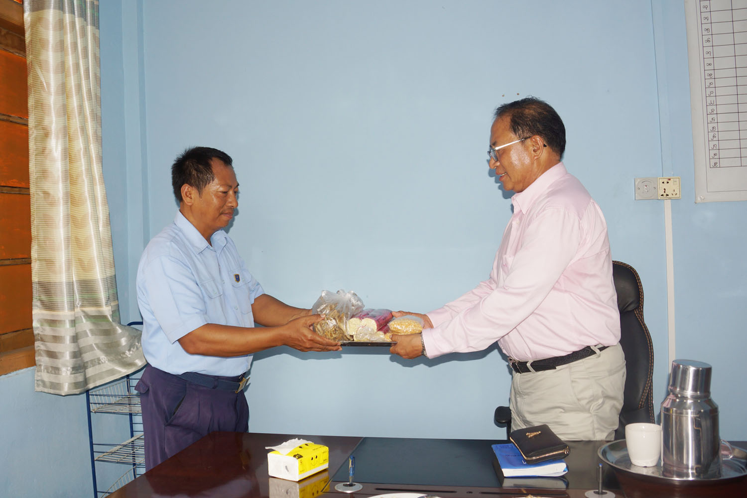 ထို့နောက် ပြည်နယ်ဝန်ကြီးသည် ညနေပိုင်းတွင် မြို့နယ်စည်ပင်သာယာရေးအဖွဲ့ ရုံးအစည်းအဝေးခန်းမ၌ ပူတာအို/ မချမ်းဘော/ နောင်မွန်း/ ခေါင်လန်ဖူး၊ ပန်နန်းဒင်တို့ရှိ စည်ပင်သာယာရေးအဖွဲ့များမှ အရာထမ်း၊ အမှုထမ်းများအား လည်းကောင်း၊ ခရိုင်လျှပ်စစ်အင်ဂျင်နီယာ အစည်းအဝေးခန်းမ၌ အင်ဂျင်နီယာများ၊ ရုံးဝန်ထမ်းများနှင့် လည်းကောင်း သီးခြားစီတွေ့ဆုံ၍ အားပေးအမှာစကားပြောကြားကာ ဝန်ထမ်းများအတွက် အခြေခံစားသောက်ကုန်များဖြစ်သည့် ငါးခြောက်၊ ကုလားပဲ၊ ဂျုံခေါက်ဆွဲထုပ်များနှင့် ထောက်ပံ့ငွေများ ထောက်ပံ့ပေးအပ်ခဲ့သည်။