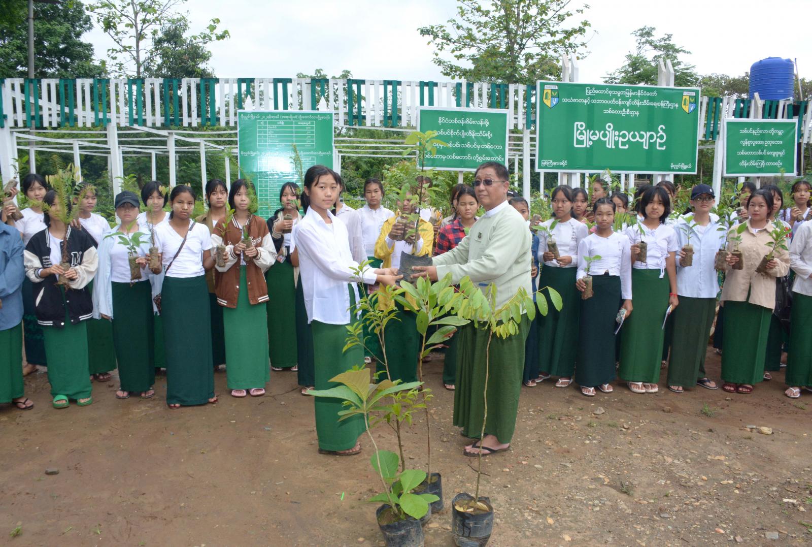 ဆက်လက်၍ အသိပညာပေးဟောပွဲသို့ တက်ရောက်လာကြသူများက မြို့မသစ်တော ပျိုးဥယျာဉ်သို့ သွားရောက်လေ့လာကြရာ မြို့နယ်ဦးစီးမှူးက ပျိုးဥယျာဉ်တွင် ဒေသရေမြေ ရာသီဥတုနှင့် ကိုက်ညီသည့် ပျိုးပင်မျိုးစိတ်များ စိုက်ပျိုးထားရှိမှုအခြေအနေများနှင့် ပျိုးပင်အမျိုးအမည်များကို ရှင်းလင်းပြသပြီး ကျောင်းသား ကျောင်းသူများက စိတ်ဝင်တစား လေ့လာကြည့်ရှုခဲ့ကြကြောင်းနှင့် ပျိုးပင်များကို ကျောင်းသားကျောင်းသူများအား ပေးဝေခဲ့ကြကြောင်း သိရသည်။