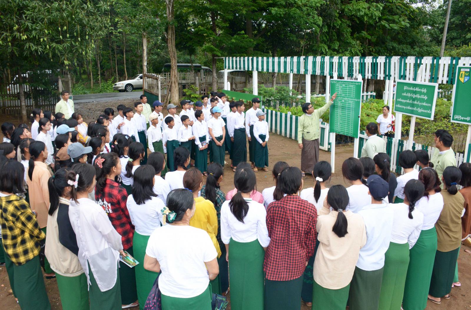 ဆက်လက်၍ အသိပညာပေးဟောပွဲသို့ တက်ရောက်လာကြသူများက မြို့မသစ်တော ပျိုးဥယျာဉ်သို့ သွားရောက်လေ့လာကြရာ မြို့နယ်ဦးစီးမှူးက ပျိုးဥယျာဉ်တွင် ဒေသရေမြေရာသီဥတုနှင့် ကိုက်ညီ သည့် ပျိုးပင်မျိုးစိတ်များ စိုက်ပျိုးထားရှိမှုအခြေအနေများနှင့် ပျိုးပင်အမျိုး အမည်များကို ရှင်းလင်း ပြသပြီး ကျောင်းသား၊ ကျောင်းသူများက စိတ်ဝင်တစား လေ့လာကြည့်ရှုခဲ့ကြကြောင်းနှင့် ပျိုးပင် များကို ကျောင်းသား၊ ကျောင်းသူများအား ပေးဝေခဲ့ကြကြောင်း သိရသည်။