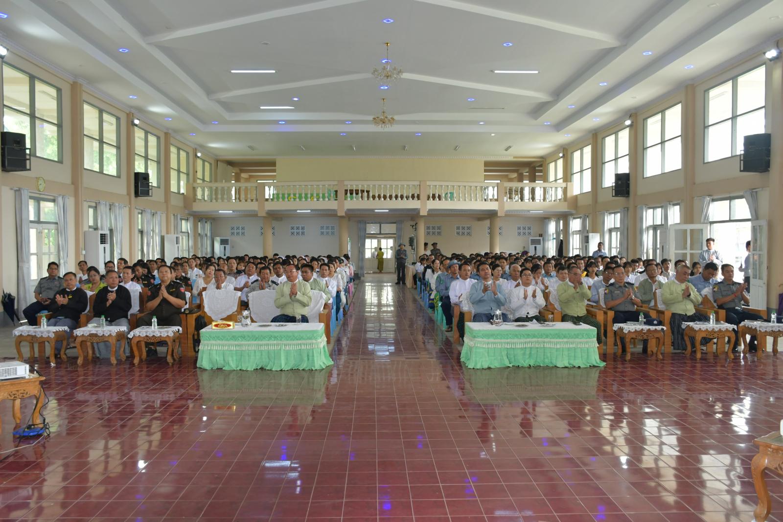 အခမ်းအနားတွင် ခရိုင်စီမံအုပ်ချုပ်ရေးအဖွဲ့ဥက္ကဋ္ဌ ဦးအောင်ဇော်လတ်က နှစ်စဉ်နှစ်တိုင်း ဇွန်လ (၅)ရက်နေ့ကို ကမ္ဘာ့ပတ်ဝန်းကျင်ထိန်းသိမ်းရေးနေ့အဖြစ် သတ်မှတ်ထားပါကြောင်း ယခုနှစ်ကမ္ဘာ့ပတ်ဝန်းကျင်ထိန်းသိမ်းရေးနေ့ အထိမ်းအမှတ်ဆောင်ပုဒ်မှာ “သဲကန္တာရတိုက်ဖျက်ရေးနှင့် မိုးခေါင်ရေရှားဒဏ်ခံနိုင်ရေး မြေယာပြန်လည်ပြုပြင်ပေး” ဖြစ်ကြောင်း၊ ယခုနှစ်ဆောင်ပုဒ်နှင့်အညီ သစ်ပင်သစ်တောများနှင့် ဂေဟစနစ်များ၏ အစစ်အမှန်တန်ဖိုးကို သိရှိနားလည်ပြီး တစ်ဦးတစ်ယောက်ခြင်းမှသည် အစုအဖွဲ့အလိုက်၊ ရပ်ကွက်၊ ကျေးရွှာ၊ မြို့ပြဒေသအလိုက် သစ်ပင်များစိုက်ပျိုး ထိန်းသိမ်းပြီး ဂေဟစနစ်ကို ပြန်လည်ဖြည့်တင်းဖို့လိုကြောင်း အဖွင့်အမှာစကားပြောခဲ့သည်။