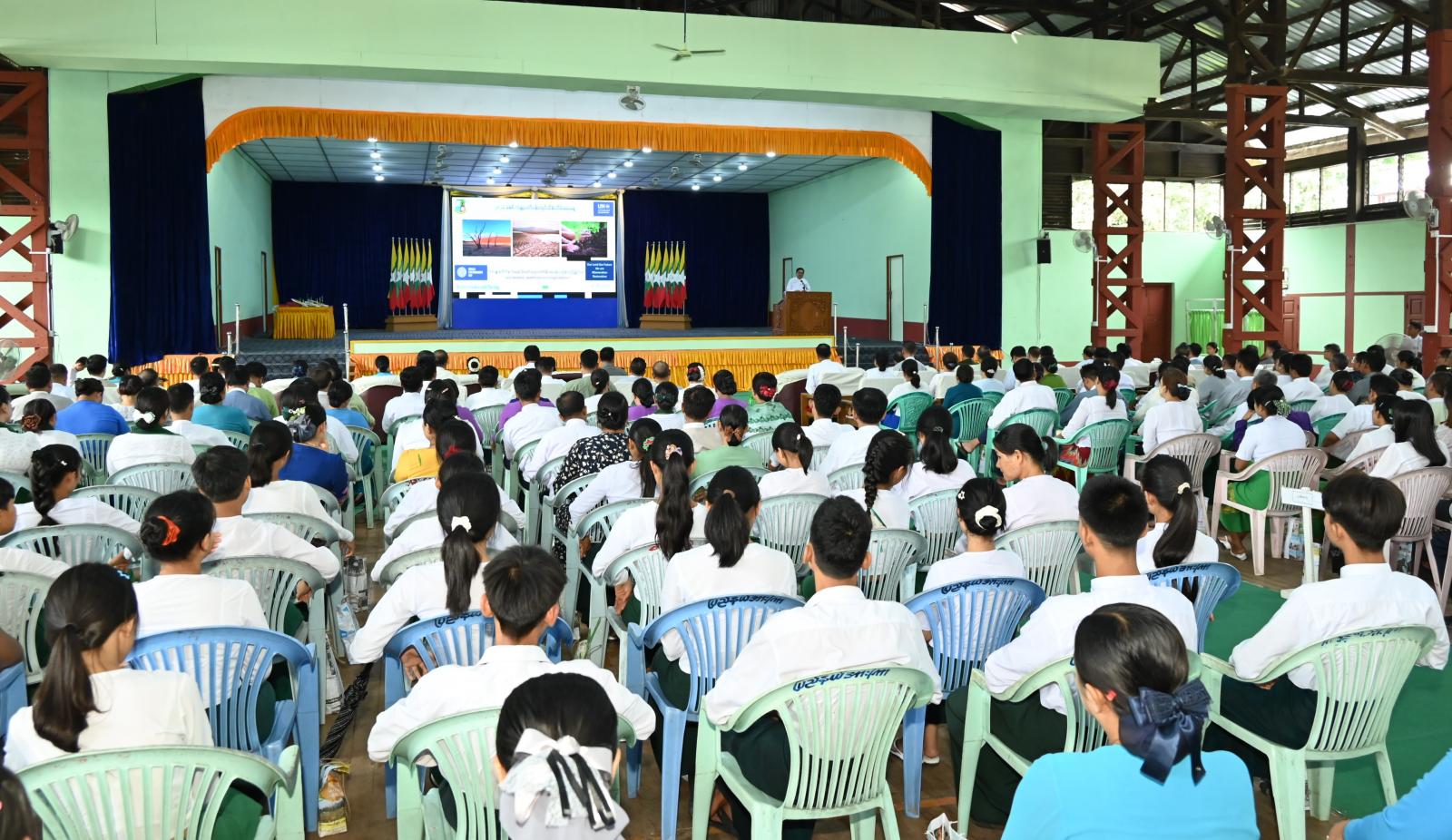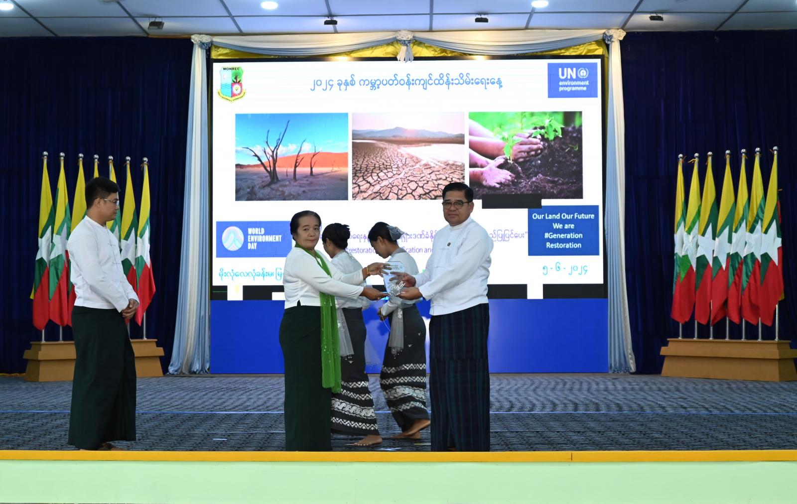 “သဲကန္တာရတိုက်ဖျက်ရေးနှင့် မိုးခေါင်ရေရှားဒဏ်ခံနိုင်ရေး မြေယာပြန်လည်ပြုပြင်ပေး၊ Land restoration, desertification and drought restoration” ဆောင်ပုဒ်ဖြင့် ၂၀၂၄ ခုနှစ် မေလ ၅ ရက်နေ့တွင်ကျရောက်သည့် ကမ္ဘာ့ပတ်ဝန်းကျင်ထိန်းသိမ်းရေးနေ့ အထိမ်းအမှတ်အခမ်းအနားကို ကချင်ပြည်နယ်၊ မြစ်ကြီးနားမြို့ ပြည်သူ့အားကစားကွင်းအတွင်း မိုးလုံလေလုံအားကစားခန်းမ၌ ကျင်းပရာ ပြည်နယ်ဝန်ကြီးချုပ် ဦးခက်ထိန်နန် ဂုဏ်ပြုအမှာစကားပြောကြားခဲ့သည်။