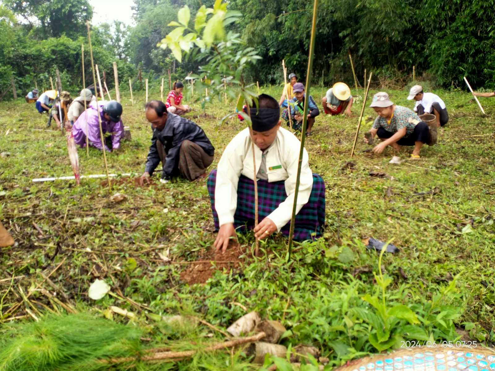 ရှေးဦးစွာ ဝိုင်းမော်မြို့နယ် သစ်တောဦးစီးဌာနမှူး ဦးငြိမ်းထွန်းမှ မန်ဒေါင်ကျေးရွာ အုပ်ချုပ်ရေးမှူး ဦးမဒိန်ဂေါ့ယွမ်ကျန်းတိန့်ဘောနှင့် တာဝန်ရှိသူများအား စိုက်ပျိုးမည့်သစ်ပင်များကို ပေးအပ်ကာ တက်ရောက်လာသူများက ကျွန်း(၅၀၀)ပင်၊ ပျဥ်းကတိုး(၄၀၀)ပင်၊ ယမနေ(၂၀၀)၊ စံကားဝါ(၂၀၀)၊ မဟော်ဂနီ(၂၀၀)နှင့် မန်ဂျန်ရှား(၅၀)၊ စုစုပေါင်း (၁၅၅၀) ပင်အား သတ်မှတ်နေရာများတွင် စနစ်တကျ စုပေါင်းစိုက်ပျိုးခဲ့ကြောင်း သိရသည်။