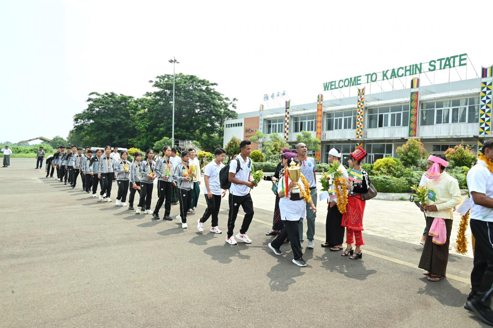 ၂၀၂၄ ခုနှစ် တိုင်းဒေသကြီးနှင့် ပြည်နယ်ဂျူဒိုပြိုင်ပွဲတွင် ကချင်ပြည်နယ်အနေဖြင့် အမျိုးသား၊ အမျိုးသမီးတို့က ပါဝင်ယှဉ်ပြိုင်ကြပြီး ရွှေတံဆိပ် (၈)ခု၊ ငွေတံဆိပ် (၁)ခုနှင့် ကြေးတံဆိပ် (၅)ခုတို့ဖြင့် အမျိုးသမီးတံခွန်စိုက်၊ စုပေါင်းတံခွန်စိုက်ဆုများနှင့် အကောင်းဆုံးအမျိုးသမီးကစားသမားဆုများရရှိခဲ့သည့် ပြည်နယ်လက်ရွေးစင်ဂျူဒိုအသင်းသည် ယမန်နေ့ နံနက် ၉ နာရီ ၄၅ မိနစ်က မြစ်ကြီးနားမြို့သို့ လေကြောင်းခရီးဖြင့် ရောက်ရှိလာခဲ့ကြရာ သောင်းသောင်းဖြဖြကြိုဆိုခဲ့ကြသည်။