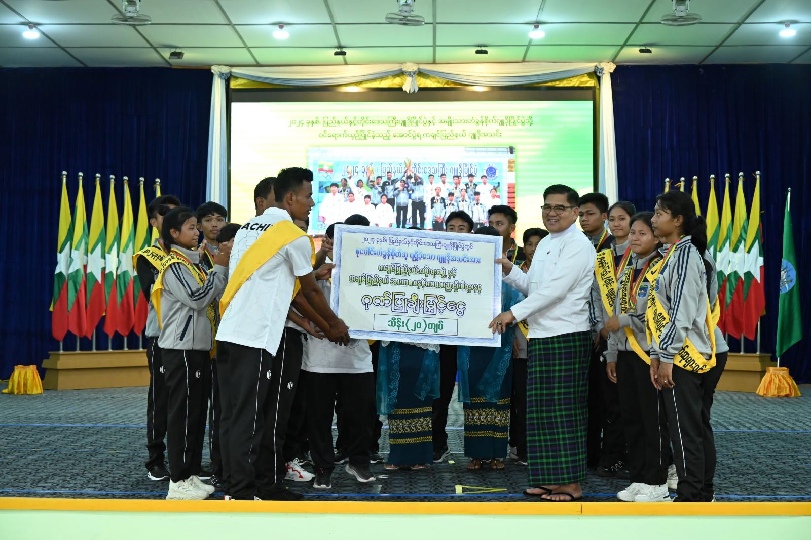 ဆက်လက်၍ အောင်ပွဲရ ဂျူဒိုအသင်းအုပ်ချုပ်သူနှင့် နည်းပြတို့က ပြိုင်ပွဲအတွေ့အကြုံများနှင့် ကြိုတင်ပြင်ဆင်ဆောင်ရွက်ခဲ့မှု အခြေအနေများ၊ ဆုတံဆိပ်များ ဆွတ်ခူးရယူနိုင်ခဲ့မှု အခြေအနေများ ကို အသီးသီး ရှင်းလင်းတင်ပြကြသည်။ ထို့နောက် အောင်ပွဲရဂျူဒိုအသင်းအား ဂုဏ်ပြုချီးမြှင့်ကြရာ ပြည်နယ်ဝန်ကြီးချုပ်၊ ပြည်နယ်တရားလွှတ်တော် တရားသူကြီးချုပ်၊ ပြည်နယ်အစိုးရအဖွဲ့ဝင် ဝန်ကြီးများက အမျိုးသားတံခွန်စိုက်ဆု၊ စုပေါင်းတံခွန်စိုက်ဆုများ၊ အကောင်းဆုံးအမျိုးသမီးဆုရ အားကစားသမားနှင့် ရွှေ၊ ငွေ၊ ကြေးတံဆိပ် ဆုရအားကစားသမားများအား စုစုပေါင်းငွေကျပ် (၁၈၉)သိန်းနှင့် ပြည်နယ်ဝန်ကြီးများနှင့် ပြည်နယ်ဥပဒေချုပ်တို့က ဂုဏ်ပြုချီးမြှင့်သည့် ငွေကျပ်သိန်း (၄၀)နှင့် ဂုဏ်ပြုမှတ်တမ်းလွှာများကိုလည်းကောင်း၊ ကြိုဆိုဂုဏ်ပြုရာတွင် ဝိုင်းဝန်းပူးပေါင်း ဆောင်ရွက်ပေးကြသည့် အကအဖွဲ့များ၊ ဘင်ခရာအဖွဲ့များအတွက် ချီးမြှင့်ငွေများကို လည်းကောင်း အသီးသီးပေးအပ်ချီးမြှင့်ခဲ့ကြရာ အောင်ပွဲရဂျူဒို အသင်းကိုယ်စားအားကစားသမား (၁)ဦးက ကျေးဇူးတင်စကား ပြန်လည်ပြောကြားကာ လက်ရွေးစင်ဂျူဒိုအသင်းနှင့် အတူ ဂုဏ်ပြုနေ့လယ်စာကို အတူတကွ သုံးဆောင်ခဲ့ကြသည်။