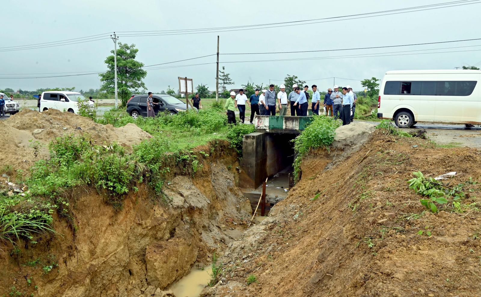ယင်းနောက် ပြည်နယ်ဝန်ကြီးချုပ်သည် အဆိုပါရပ်ကွက်အတွင်း ဆည်မြောင်းနှင့်ရေအသုံးချမှုဦးစီး ဌာနက ပမ္မတီးအနောက်မြောက် (ရွှေပြည်သာကွင်း) အတွင်းရှိ လယ်ယာဥယျာဉ်ခြံများနှင့် ငါးမွေးမြူ ရေးကန် ဧရိယာများအတွင်း မိုးရာသီတွင် ရေလျှံမှုနှင့် ရေကြီးနှစ်မြုပ်မှုကြောင့် ပြည်နယ် အစိုးရအဖွဲ့ ၏ ရန်ပုံငွေဖြင့် မူလတူးဖော်ထားသည့် ရေနှုတ်မြောင်း အရှည်ပေ (၃၅၀၀)အား ပြန်လည်ပြုပြင် တူးဖော်ထားရှိမှုကို ကြည့်ရှုစစ်ဆေးခဲ့ကြသည်။