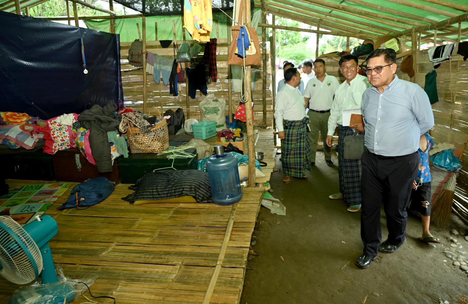 ထို့နောက် စခန်းတာဝန်ခံက အိမ်ထောင်စုများ ယာယီနေအိမ်တန်းလျားများ ဆောက်လုပ်ရာ တွင် လိုအပ်ချက်များ၊ အခက်အခဲများကို တင်ပြရာ ပြည်နယ်ဝန်ကြီးချုပ်က အိမ်ထောင်စုများအတွက် လိုအပ်သည့် ရေအိမ်သာများ၊ သောက်သုံးရေလိုအပ်လျက်များကို အမြန်ဆုံး ဖြည့်ဆည်းဆောင်ရွက် ပေးနိုင်ရေး တာဝန်ရှိသူများနှင့် ပေါင်းစပ်ဆောင်ရွက်ပေးခဲ့ပြီး ယာယီနေအိမ်တန်းလျားများ တည် ဆောက်နိုင်ရေးအတွက် လိုအပ်သည့် ဝါးများ ဝယ်ယူနိုင်ရေး ငွေကျပ် ၂၅ သိန်းကို ထောက်ပံ့ပေးအပ် ခဲ့ကာ အိမ်ထောင်စုများ၏ ယာယီနေအိမ်အဆောက်အအုံများအား လှည့်လည်ကြည့်ရှုစစ်ဆေးခဲ့ကြ ပြီး နေအိမ်ပတ်ဝန်းကျင်အတွင်း သဲကျောက်ခင်းပေးနိုင်ရေး၊ ရေစင်ဝယ်ယူဖြည့်တင်းပေးနိုင်ရေး ဌာန ဆိုင်ရာတာဝန်ရှိသူများနှင့် ပေါင်းစပ်ညှိနှိုင်း၍ ဖြည့်ဆည်းဆောင်ရွက်ပေးခဲ့ကြောင်း သိရသည်။