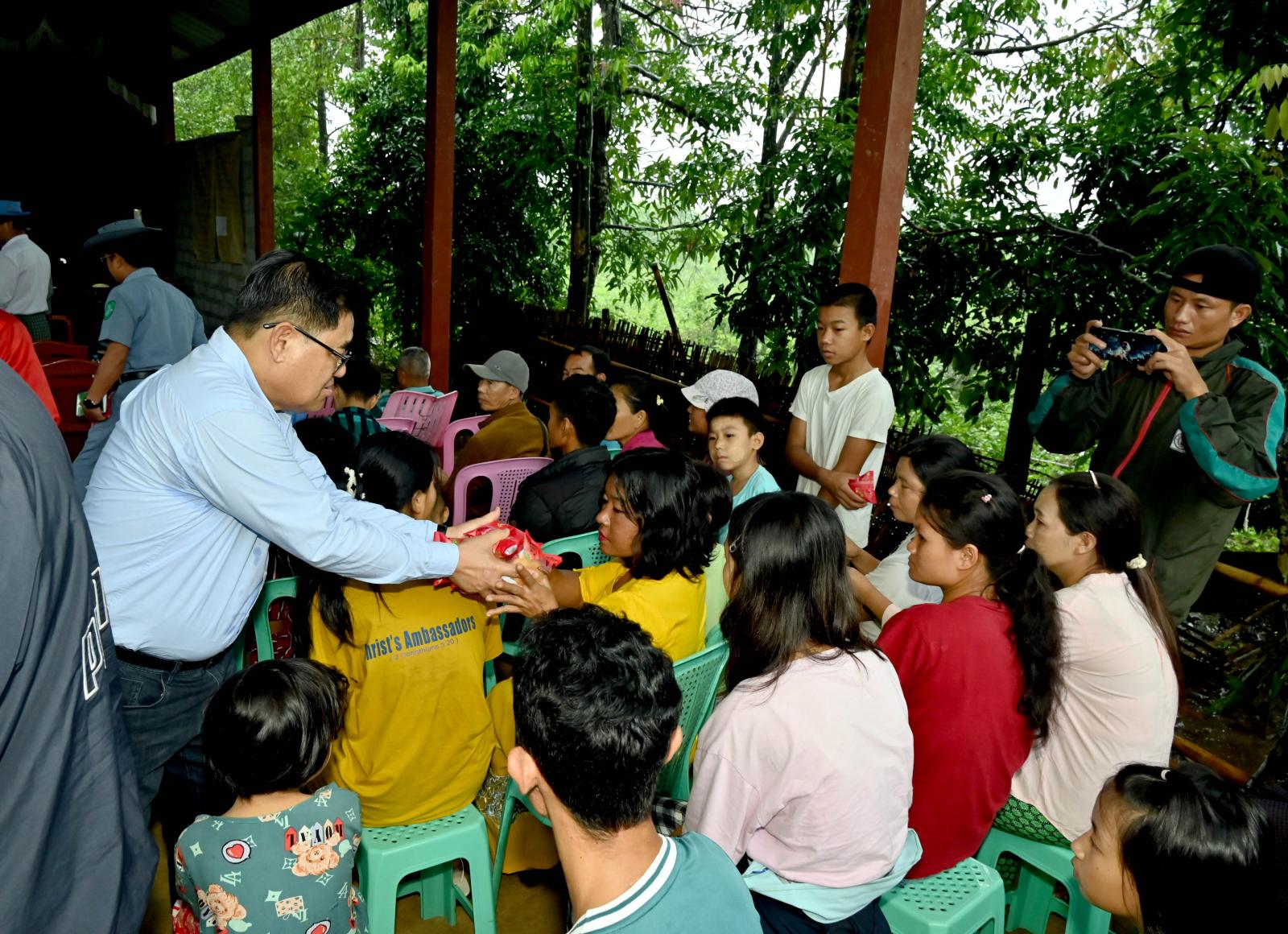 ထို့အပြင် ကချင်ပြည်နယ်အစိုးရအဖွဲ့အနေဖြင့် မြစ်ကြီးနားမြို့ပေါ်ရှိ ယာယီတိမ်းရှောင်ပြည်သူများ နေထိုင်စားသောက်မှု အဆင်ပြေစေရေးနှင့် မိုးရာသီဖြစ်သည့်အတွက် အမိုး/အကာဖြင့် လုံခြုံနွေးထွေးစွာ နေထိုင်နိုင်ရေးအတွက် စီစဉ်ဆောင်ရွက်ပေးလျက်ရှိရာ ပြည်နယ်ဝန်ကြီးချုပ်နှင့် အဖွဲ့ဝင်များသည် မြစ်ကြီးနားမြို့ ရွှေစက်ရပ်ကွက်အတွင်းရှိ ခိုလှုံရာလူငယ်ပြုစုရေးသင်တန်း ကျောင်းဝင်းအတွင်း ယာယီခိုလှုံနေထိုင်လျက်ရှိသည့် အိမ်ထောင်စု (၂၃) စု၊ လူဦးရေ (၈၁) ဦးတို့နှင့် သွားရောက်တွေ့ဆုံပြီး ပြည်နယ်ဝန်ကြီးချုပ်က အားပေးစကားပြောကြားကာ စခန်းတွင်းရှိ ကျောင်းသား ကလေးငယ်များအတွက် ဗလာစာအုပ်ဒါဇင် (၅၀) နှင့် စာရေးကိရိယာများ၊ မုန့်များကို ထောက်ပံ့ပေးအပ်သည်။