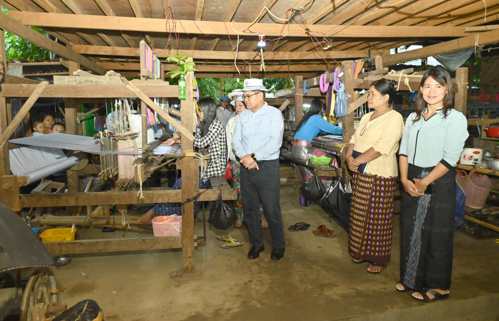 ထိုသို့ ကွင်းဆင်းစစ်ဆေးရာတွင် ပြည်နယ်ဝန်ကြီးချုပ် ဦးခက်ထိန်နန်၊ ပြည်နယ်တရားလွှတ် တော်တရားသူကြီးချုပ် ဦးတူးဂျာတို့သည် ပြည်နယ်ဝန်ကြီးများ၊ ပြည်နယ်အဆင့်ဌာနဆိုင်ရာတာဝန် ရှိသူများနှင့်အတူ မြို့သစ်ကြီးရပ်ကွက်အတွင်းရှိ “ခခူး” ရက်ကန်းရုံ၌ နိုင်ငံ့စီးပွားမြှင့်တင်ရေးရန်ပုံငွေ ပထမနှစ်စက်ဝန်းမှ မတည်ချေးငွေကျပ်သိန်း (၁၀၀) ဖြင့် ကောင်းမွန်စွာ လည်ပတ်ဆောင်ရွက်နိုင်ခဲ့ပြီး ယခုနှစ် နိုင်ငံ့စီးပွားမြှင့်တင်ရေးရန်ပုံငွေ ဒုတိယနှစ်စက်ဝန်းမှ ငွေကျပ်သိန်း (၂၀၀) ထပ်မံမတည်ပေးမှုဖြင့် ရိုးရာအဝတ်အထည်များ တိုးမြှင့်ထုတ်လုပ်နိုင်ရေးအတွက် လက်ရက်ကန်းစင်များ တိုးချဲ့ဆောင်ရွက်ထားရှိမှု၊ စက်ရက်ကန်းများ တိုးချဲ့ပြင်ဆင်ဆောင်ရွက်နေမှု အခြေအနေများကို လှည့်လည်ကြည့် ရှုစစ်ဆေးပြီး ပြည်နယ်ဝန်ကြီးချုပ်က ဈေးကွက်ရရှိမှု အခြေအနေများနှင့် တိုးချဲ့ဆောင်ရွက်သည့် လုပ်ငန်းများနှင့်စပ်လျဉ်း၍ မေးမြန်းဆွေးနွေးခဲ့ကာ လိုအပ်သည်များ ကူညီဖြည့်ဆည်းပေးနိုင်ရေး ဌာနဆိုင်ရာတာဝန်ရှိသူနှင့် ပေါင်းစပ်ညှိနှိုင်း ဆောင်ရွက်ပေးခဲ့သည်။