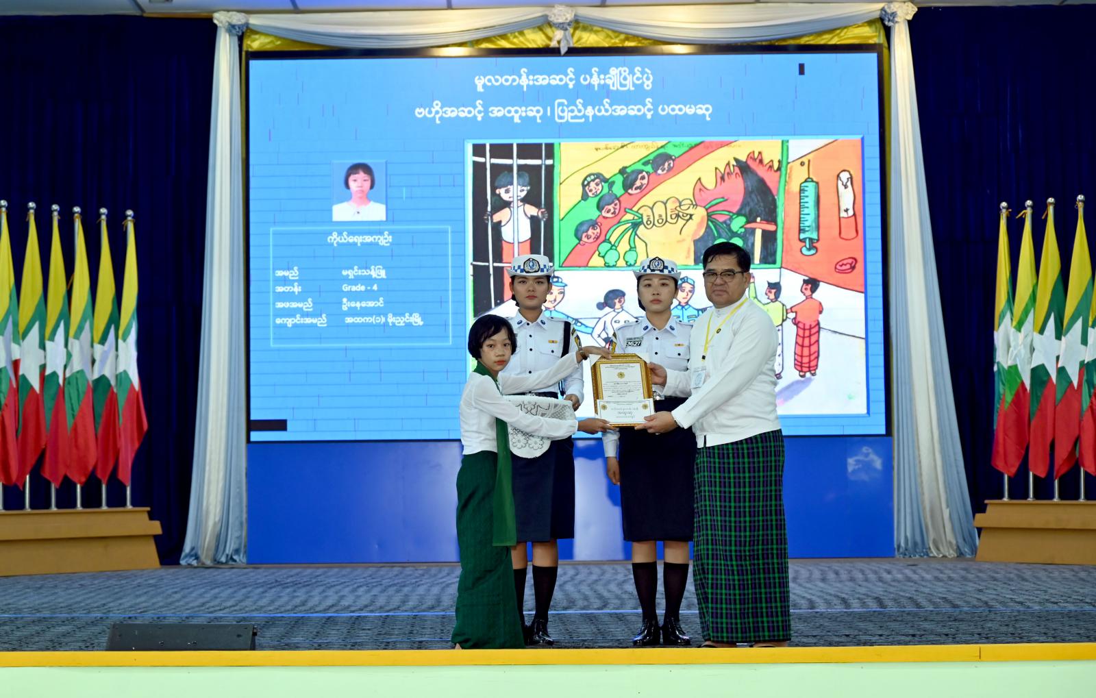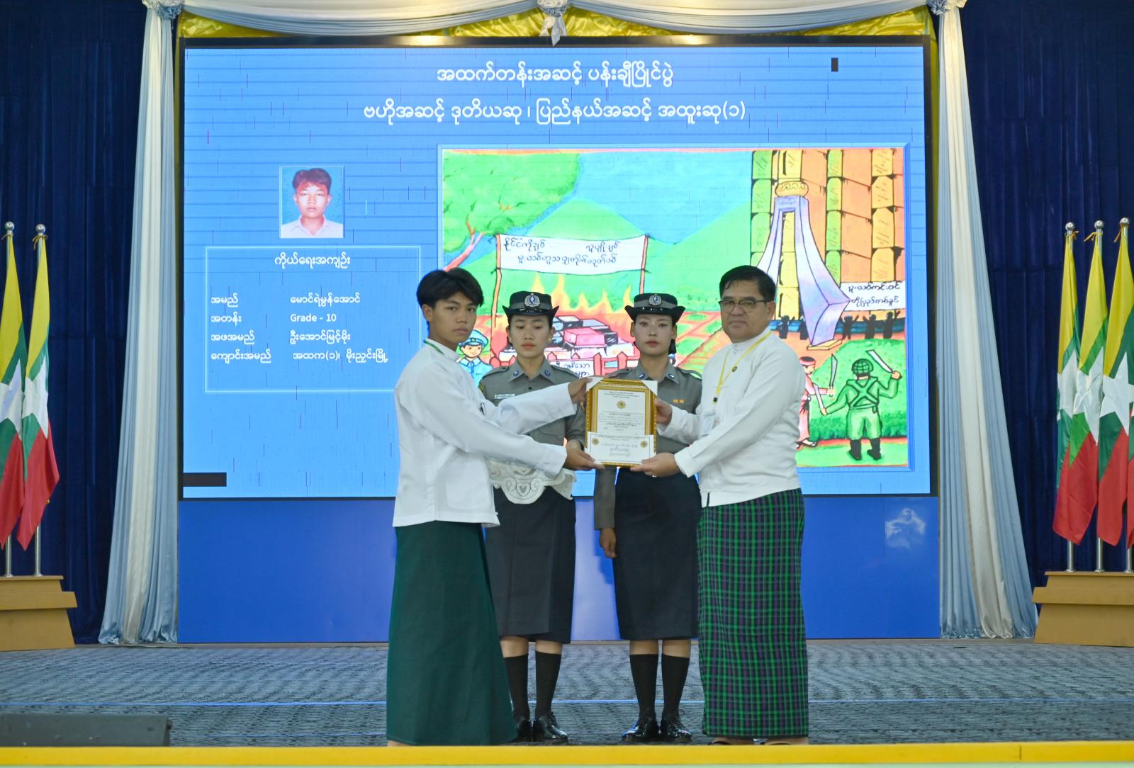 ယင်းနောက် ဆုများကို ပေးအပ်ချီးမြှင့်ရာ ပြည်နယ်ဝန်ကြီးချုပ်က (၃၇)ကြိမ်မြောက် အပြည်ပြည်ဆိုင်ရာ မူးယစ်ဆေးဝါးအလွဲသုံးမှုနှင့် တရားမဝင်ရောင်းဝယ်မှုတိုက်ဖျက်ရေးနေ့အထိမ်းအမှတ် ပြိုင်ပွဲများ၌ (ဗဟိုအဆင့်)တွင် ဆုရရှိသူများအားလည်းကောင်း၊ ပြည်နယ်တရားလွှတ်တော်တရားသူကြီးချုပ် ဦးတူးဂျာနှင့် ပြည်နယ်အစိုးရအဖွဲ့ဝင်များက ပြည်နယ်အဆင့် ပန်းချီ၊ ကာတွန်း၊ ပိုစတာနှင့် ကွန်ပျူတာပန်းချီပြိုင်ပွဲများတွင် ပထမ၊ ဒုတိယ၊ တတိယနှင့် အထူးဆုရရှိသော ကျောင်းသား၊ ကျောင်းသူများအားလည်းကောင်း၊ ပြည်နယ်ရဲတပ်ဖွဲ့မှူး ရဲမှူးကြီးကျော်ထွန်းက မူးယစ်ဆေးဝါးများ စွမ်းစွမ်းတမံဖော်ထုတ်ဖမ်းဆီးခဲ့ကြသည့် ဆုရတပ်ဖွဲ့ဝင်များနှင့် ပူးပေါင်းပါဝင်ခဲ့ကြသော ရပ်မိ/ ရပ်ဖများအားလည်းကောင်း ဂုဏ်ပြုမှတ်တမ်းလွှာနှင့် ဂုဏ်ပြုချီးမြှင့်ငွေများကို အသီးသီးချီးမြှင့်ပေးအပ်ခဲ့ကြသည်။