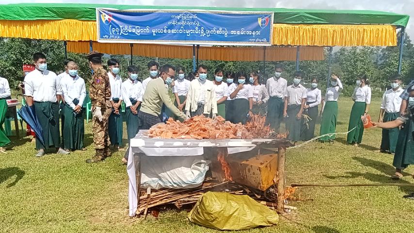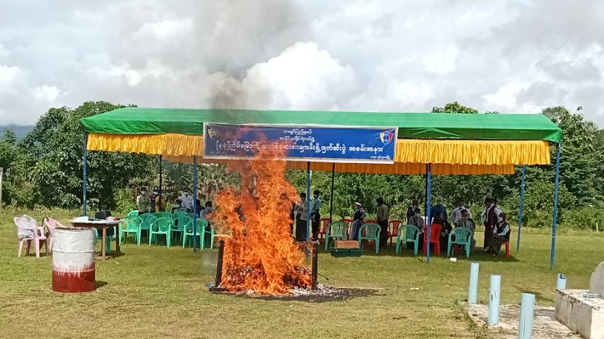 ကချင်ပြည်နယ်၊ တနိုင်းခရိုင်၊ ရှင်ဗွေယန်မြို့၌ (၃၇) ကြိမ်မြောက် မူးယစ်ဆေးဝါးအလွဲသုံးမှုနှင့် တရားမဝင်ရောင်းဝယ်မှုတိုက်ဖျက်ရေးနေ့အထိမ်းအမှတ်အနေဖြင့် မူးယစ်ဆေးဝါးမီးရှို့ဖျက်ဆီးပွဲအခမ်းအနားကို မြို့အထွေထွေအုပ်ချုပ်ရေးဦးစီးဌာနရုံးဝန်းအတွင်း ယနေ့ နံနက် ၉ နာရီအချိန်က မီးရှို့ဖျက်ဆီးရေးဘုတ်အဖွဲ့ဝင်များ၊ ဌာနဆိုင်ရာဝန်ထမ်းများနှင့် မြို့ရပ်မိ/ ရပ်ဖ များ ပူးပေါင်းဆောင်ရွက်ခဲ့သည်။
