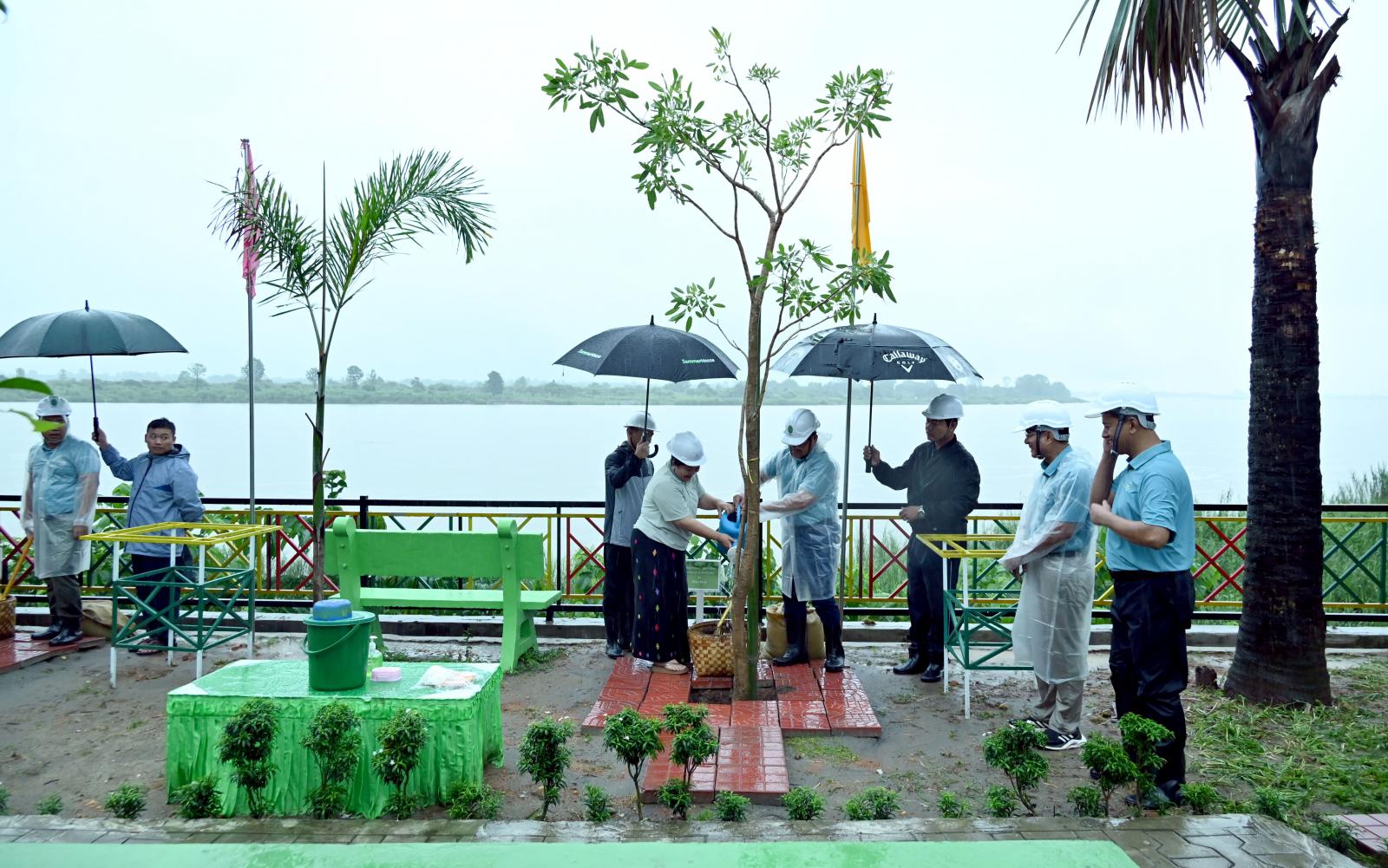 ယင်းနောက် ပြည်နယ်ဝန်ကြီးချုပ်နှင့် ဇနီး၊ ပြည်နယ်တရားလွှတ်တော်တရားသူကြီးနှင့် ဇနီး၊ ပြည်နယ်ဝန်ကြီးများနှင့် ၎င်းတို့၏ ဇနီးများ၊ ဌာနဆိုင်ရာ တာဝန်ရှိသူများ၊ အမျိုးသမီးရေးရာအဖွဲ့ဝင် များ၊ မြန်မာနိုင်ငံ ကချင်လူမျိုး ရိုးရာယဉ်ကျေးမှုအဖွဲ့ဝင်များ၊ ငြိမ်းချမ်းသောကမ္ဘာကို တည်ထောင်သူ အဖွဲ့ဝင်များက မနောဥယျဉ်ပတ်လမ်းနှင့် ငွေပျော်လမ်းဘေး ဝဲ/ယာတို့တွင် တစ်ပျော်တစ်ပါး စုပေါင်း စိုက်ပျိုးပေးခဲ့ကြသည်။