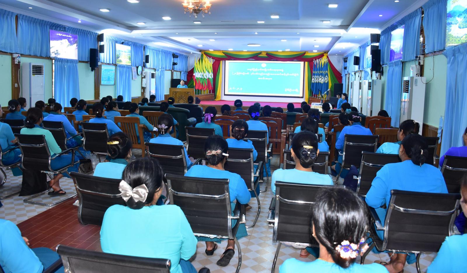 ကချင်ပြည်နယ်အမျိုးသမီးရေးရာအဖွဲ့၏ ၂၀၂၃ ခုနှစ်၊ နှစ်ပတ်လည်အစည်းအဝေးထပ်ဆင့်ရှင်းလင်းခြင်းနှင့် ရှေ့လုပ်ငန်းစဉ်များနှင့်စပ်လျဉ်း၍ ပြည်နယ်/ ခရိုင်/ မြို့နယ်အမျိုးသမီးရေးရာအဖွဲ့ဝင်များနှင့် လုပ်ငန်းညှိနှိုင်းအစည်းအဝေးကို ပြည်နယ်အစိုးရအဖွဲ့ရုံးဝင်းအတွင်းရှိ ဆမားဒူဝါဆင်ဝါးနော်ခန်းမ၌ ဇွန်လ ၂၇ ရက်နေ့တွင် ကျင်းပပြုလုပ်သည်။