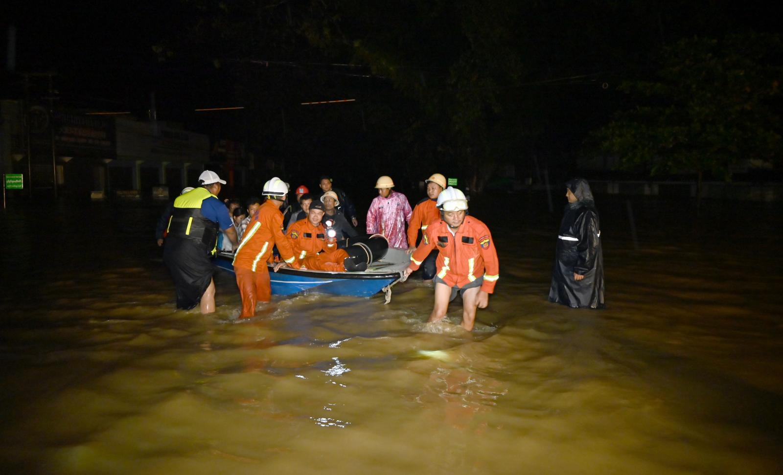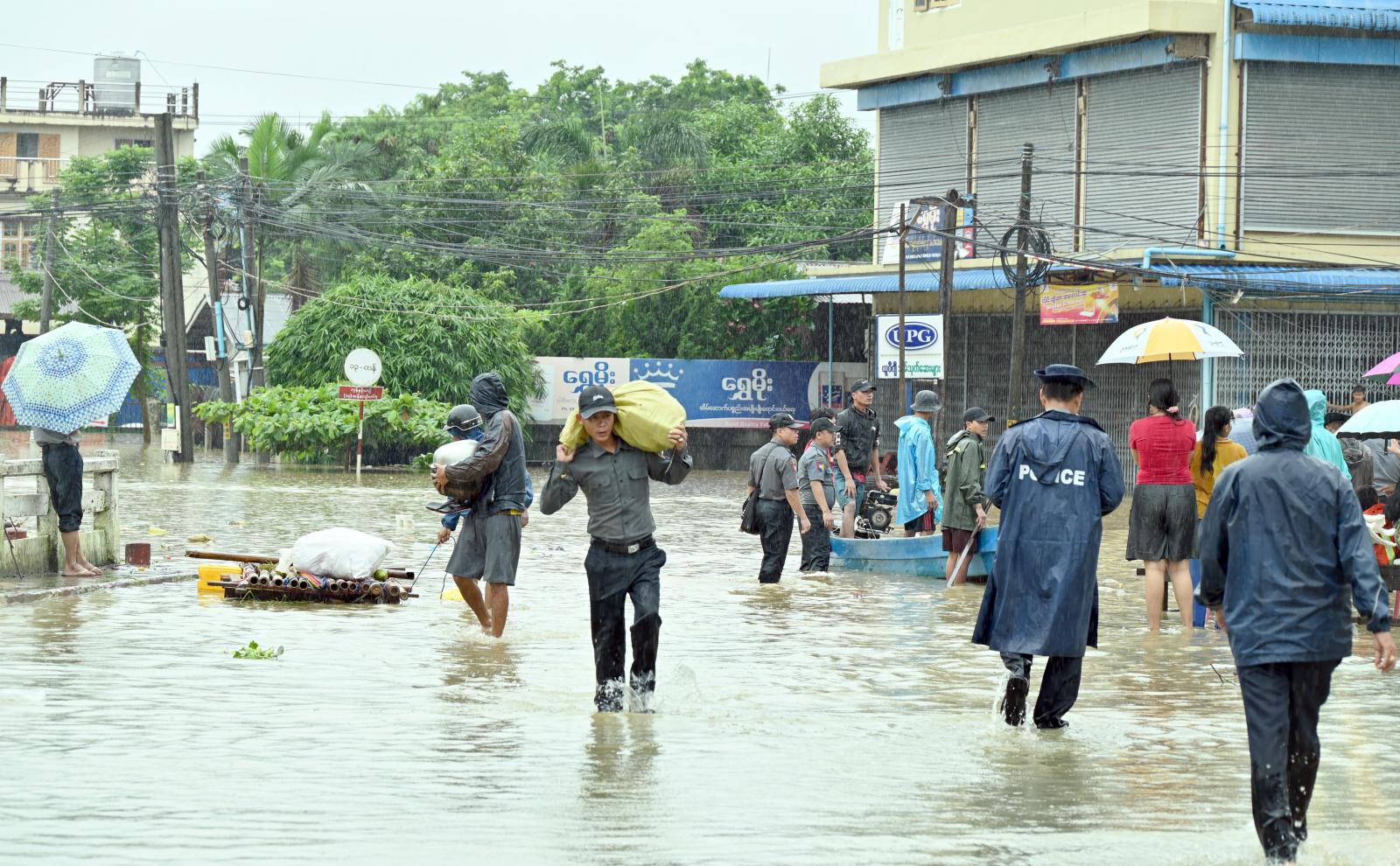 ကချင်ပြည်နယ်အတွင်း မေခနှင့် မလိခမြစ်အထက်ပိုင်း၌ မိုးသည်းထန်စွာရွာသွန်းမှုကြောင့် ဧရာဝတီမြစ်ရေသည် ဇွန် ၃၀ ရက်နေ့နံနက်ပိုင်းမှစတင်ပြီး မြင့်တက်လာခဲ့ရာ ဇူလိုင် ၁ ရက်နေ့တွင် မြစ်ကြီးနားမြို့၏ စိုးရိမ်ရေမှတ် ၁၂၀၀ စင်တီမီတာရှိသည့်အနက် မြစ်ရေသည် ညအချိန်တိုင်းတာချက်အရ ၁၄၀၆ စင်တီမီတာအထိ အမြင်ဆုံးမြင့်တက်လာခဲ့သဖြင့် မြို့ပေါ် (၂၈) ရပ်ကွက်တွင် (၁၇) ရပ်ကွက်နှင့် အာလမ်ကျေးရွာတို့တွင် ရေဝင်ရောက်ခဲ့သဖြင့် ရေဘေးသင့်ပြည်သူများအား ဘေးလွတ်ရာ အမြန်ဆုံးကယ်ဆယ်နေရာချထားပေးနိုင်ရေး ကချင်ပြည်နယ်ဝန်ကြီးချုပ်ဦးဆောင်၍ ရေဝင်ရပ်ကွက်များအား အပိုင်းလိုက်တာဝန်ခွဲဝေချထားပြီး ရေယာဉ်၊ ကားများ စနစ်တကျစုဖွဲ့၍ ရှာဖွေကယ်ဆယ်ရေးလုပ်ငန်းများကို တပ်မတော်သားများ၊ မြန်မာနိုင်ငံရဲတပ်ဖွဲ့ဝင်များ၊ ဌာနဆိုင်ရာများ၊ မီးသတ်တပ်ဖွဲ့ဝင်များ၊ ကြက်ခြေနီတပ်ဖွဲ့ဝင်များနှင့် ရပ်ကွက်/ကျေးရွာများရှိ လူမှုကူညီရေးအသင်းများက ညအချိန်အထိ ရှာဖွေကယ်ဆယ်ရေး လုပ်ငန်းများကို အရှိန်အဟုန်ဖြင့် ဆောင်ရွက်ပေးခဲ့ကြသည်။
