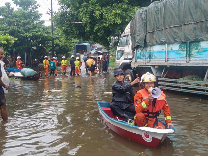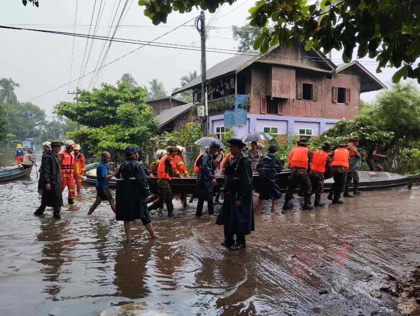 ကချင်ပြည်နယ်၊ ဗန်းမော်ခရိုင်၊ ဗန်းမော်မြို့တွင် ဧရာဝတီမြစ်ရေမြင့်တက်လာမှုကြောင့် မြေနိမ့်ပိုင်းရပ်ကွက်ဖြစ်သည့် ခွန်သာရပ်ကွက်နှင့် ဆင်ကုန်းရပ်ကွက်သို့ ယမန်နေ့ နံနက်ပိုင်းက မြစ်ရေတိုးဝင်လာပြီး အိမ်ထောင်စုအချို့အား တာဝန်ရှိသူများနှင့် ကူညီကယ်ဆယ်ရေးလုပ်ငန်းများ ဆောင်ရွက်ပေးခဲ့ကြကြောင်း သိရသည်။