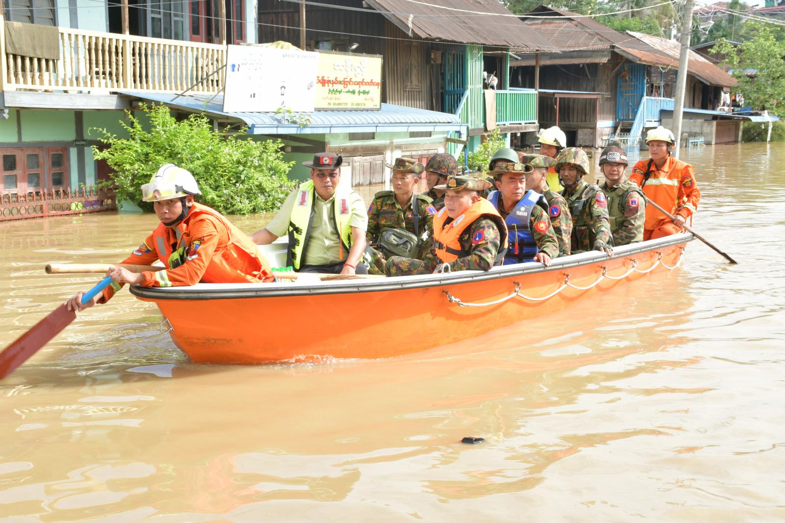 ကချင်ပြည်နယ်၊ ဗန်းမော်ခရိုင်၊ ဗန်းမော်မြို့တွင် ဧရာဝတီမြစ်ရေသည် စိုးရိမ်ရေအမှတ်အထက်သို့ ကျော်လွန်မြင့်တက်လာသဖြင့် မြေနိမ့်ပိုင်းရပ်ကွက်ကျေးရွာများတွင်နေထိုင်ကြသော ရေဘေးသင့်ပြည်သူများအား ယနေ့နံနက်ပိုင်းက အမှတ်(၂၁)စစ်ဆင်ရေးကွပ်ကဲမှုဌာနချုပ်၊ စစ်ဆင်ရေးကွပ်ကဲရေးမှူးဗိုလ်မှူးချူပ်တင်မင်းလတ်၊ ခရိုင်သဘာဝဘေးအန္တရာယ်စီမံခန့်ခွဲမှုကော်မတီအဖွဲ့ဥက္ကဋ္ဌဦးအောင်ဇော်လတ်နှင့်အဖွဲ့ဝင်များ၊ တာဝန်ရှိသူများက လိုက်လံကြည့်ရှုအားပေးခဲ့ကြကြောင်း သိရသည်။