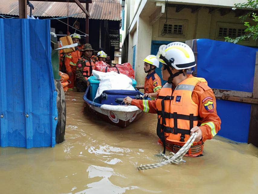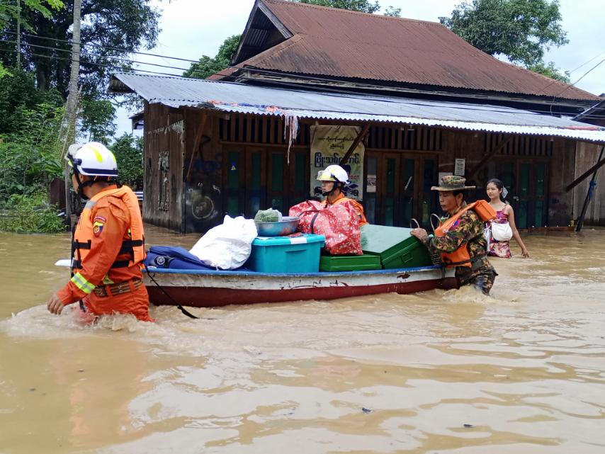 ကချင်ပြည်နယ်၊ ဗန်းမော်ခရိုင်၊ ရွှေကူမြို့နယ်အတွင်း ဇူလှိုင်လ ၁ ရက် နံနက်ပိုင်းမှစ၍ ဧရာဝတီမြစ်ရေမြင့်တက်လာပြီး ယနေ့နံနက်ပိုင်းအထိ ဆက်လက်မြင့်တက်လျက်ရှိရာ ရွှေကူမြို့နယ်သဘာဝဘေးအန္တရာယ်စီမံခန့်ခွဲရေးကော်မတီ၊ နယ်မြေခံတပ်ရင်းတပ်ဖွဲ့ဝင်များ၊ မြို့နယ်ရဲတပ်ဖွဲ့ဝင်များနှင့် မြို့နယ်မီးသတ်တပ်ဖွဲ့ဝင်များပါဝင်သည့်ပူးပေါင်းအဖွဲ့မှ ကူညီကယ်ဆယ်ရေးလုပ်ငန်းများ ဆက်လက်ဆောင်ရွက်ပေးလျက်ရှိကြောင်း သိရသည်။