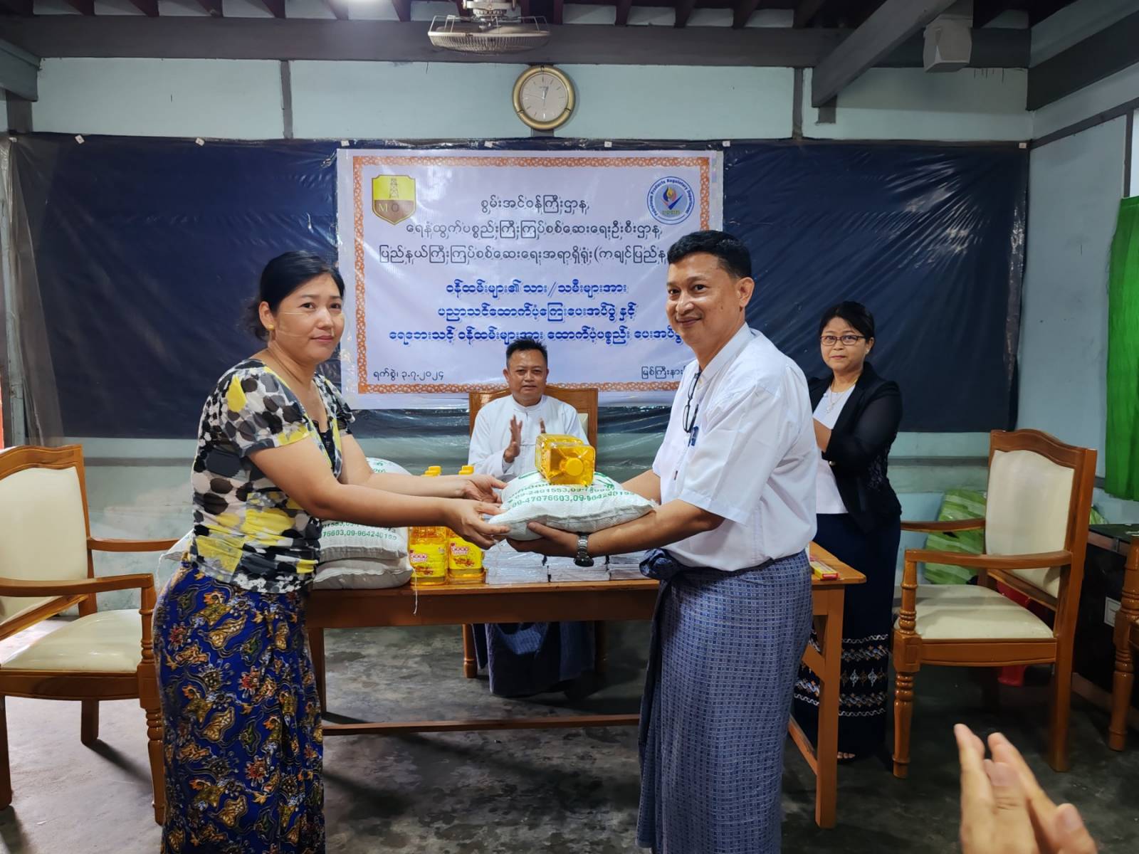 စွမ်းအင်ဝန်ကြီးဌာန၊ ရေနံထွက်ပစ္စည်းကြီးကြပ်စစ်ဆေးရေးဦးစီးဌာန၊ ကချင်ပြည်နယ် ကြီးကြပ်စစ်ဆေးရေးအရာရှိရုံးတွင် တာဝန်ထမ်းဆောင်နေသော ဝန်ထမ်းများ၏ သား/ သမီးများနှင့် ရေဘေးသင့်ဝန်ထမ်းမိသားစုများအား အခြေခံစားသောက်ကုန်များ ထောက်ပံ့ပေးအပ်ပွဲအခမ်းအနားကို မြစ်ကြီးနားမြို့ရှိ အဆိုပါရုံးခန်းမ၌ ယမန်နေ့ နံနက်ပိုင်းက ကျင်းပခဲ့ကြောင်း သိရသည်။