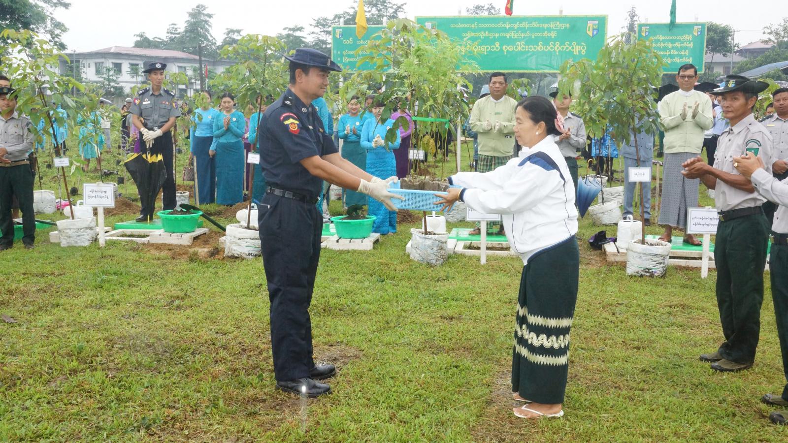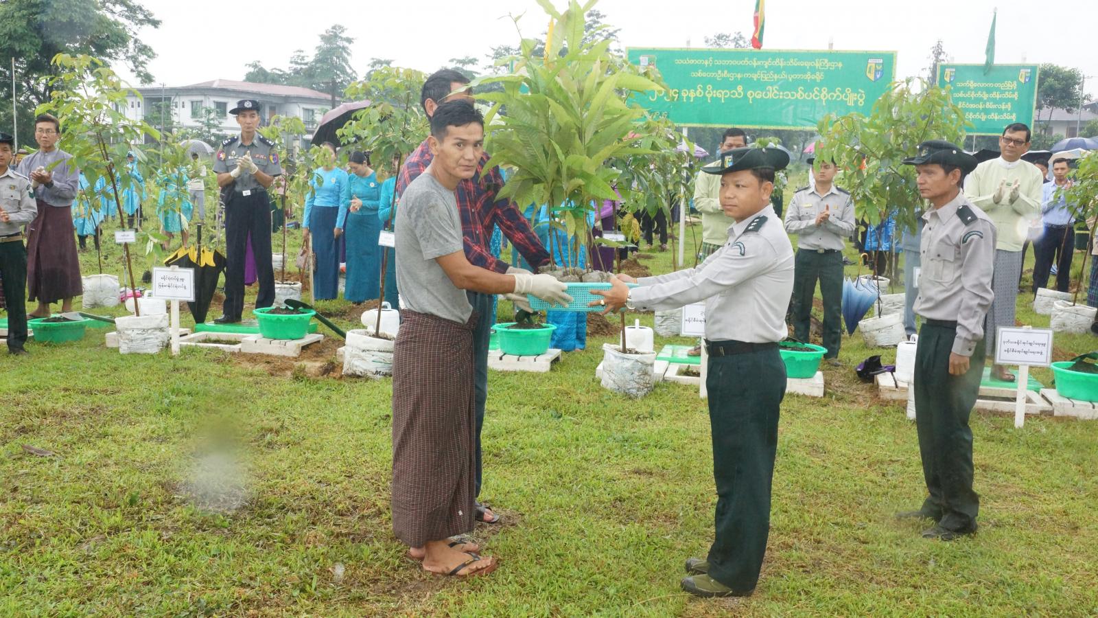 ရှေးဦးစွာ ခရိုင်စီမံအုပ်ချုပ်ရေးအဖွဲ့ ဥက္ကဋ္ဌ ဦးစိုးထွန်း၊ အတွင်းရေးမှူး ခရိုင်ရဲတပ်ဖွဲ့မှူး ဒုတိယရဲမှူးကြီး သိန်းဆွေညွန့်၊ခရိုင်ပညာရေးမှူး ဒေါ်သန်းသန်းညွန့်၊မြို့နယ်စီမံအုပ်ချုပ်ရေးအဖွဲ့ ဥက္ကဋ္ဌ ဦးကျော်ကျော်လွင်နှင့် မြို့နယ်သစ်တောဦးစီးဌာန မြို့နယ်ဦးစီးမှူး ဦးစောဖန်းအောင်တို့က ခရိုင်/မြို့နယ်ဌာနဆိုင်ရာများ၊ ခရိုင်/မြို့နယ်အမျိုးသမီးရေးရာအဖွဲ့၊ ခရိုင်/မြို့နယ် မိခင်နှင့်ကလေး စောင့်ရှောက်မှုကြီးကြပ်ရေးအဖွဲ့၊ သစ်လုပ်ငန်းရှင်များ၊ ကြက်ခြေနီတပ်ဖွဲ့၊ ပရဟိတအဖွဲ့များနှင့် ရပ်ကွက်အုပ်ချုပ်ရေးမှူးများအား စိုက်ပျိုးမည့်ပျိုးပင်များ ဖြန့်ဝေပေးအပ်သည်။