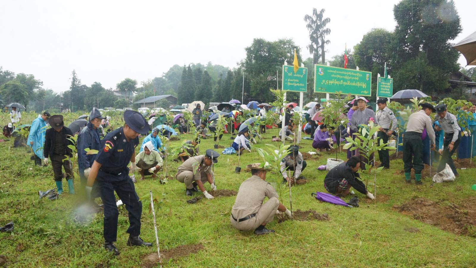 ကချင်ပြည်နယ်၊ ပူတာအိုခရိုင်တွင် ခရိုင်စီမံအုပ်ချုပ်ရေးအဖွဲ့၏ဦးဆောင်မှုဖြင့် ဒေသစိမ်းလန်းစိုပြည်လာစေရေးနှင့် သဘာဝပတ်ဝန်းကျင်ထိန်းသိမ်းရေးအတွက် အကျိုးပြုသည့် ၂၀၂၄-ခုနှစ် မိုးရာသီစုပေါင်းသစ်ပင်စိုက်ပျိုးပွဲကို ယမန်နေ့ နံနက်(၇)နာရီက ပူတာအိုမြို့ လေယာဉ်ကွင်းရပ်ကွက်ရှိ ပူတာအိုလေဆိပ်သွား လမ်းဘေး မြေကွက်လပ်၌ကျင်းပသည်။