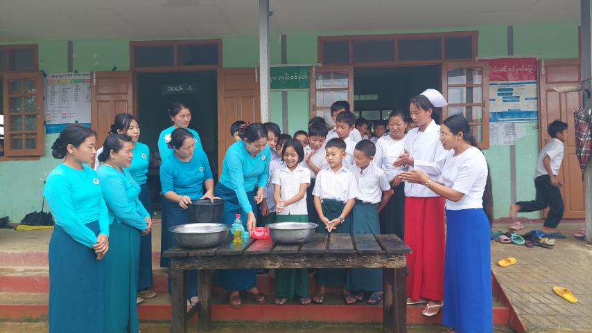ထိုသို့ဆောင်ရွက်ရာတွင် မြို့နယ်မိခင်နှင့်ကလေးကျန်းမာရေးဌာနမှ ကျန်းမာရေးကြီးကြပ်(၂)ဆရာမအိအိငြိမ်းက တစ်ကိုယ်ရေသန့်ရှင်းရေးနှင့်ကျန်းမာရေး အသိပညာပေး အကြောင်းအရာများကို ဟောပြောပြီး ခရိုင်မိခင်နှင့်ကလေးစောင့်ရှောက်မှု ကြီးကြပ်ရေးအဖွဲ့ဥက္ကဋ္ဌ ဒေါ်ဥမ္မာကိုကိုကြီးက လက်ကိုမှန်ကန်စွာ သန့်စင်ဆေးကြောနည်းကို ကျောင်းသူ၊ ကျောင်းသားများအား လက်တွေ့သရုပ်ပြပြုလုပ်ခဲ့ကာ ကျောင်းသူကျောင်းသားများကို ပေါင်ချိန်တိုင်းတာခြင်း၊ လက်မောင်းတိုင်းခြင်းများကိုပါ ဆောင်ရွက်ခဲ့သည်။