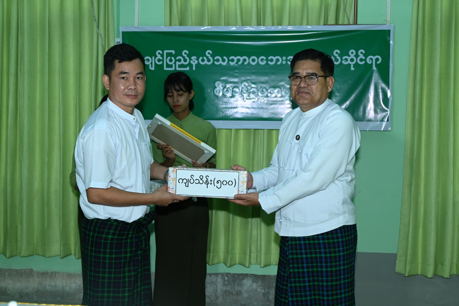 လှူဒါန်းပေးအပ်ပွဲတွင် ပြည်နယ်ဝန်ကြီးချုပ်က အလှူရှင်များအား မိမိတို့၏ညီအစ်ကိုမောင်နှမများဖြစ်သည့် ရေဘေးသင့်ပြည်သူများအတွက် ယခုလို လာရောက်ထောက်ပံ့လှူဒါန်းပေးခြင်းကို ပြည်သူများအားကိုယ်စား မှတ်တမ်းတင် ဂုဏ်ယူပါကြောင်း ပြောကြားကာ ပြည်နယ်သဘာဝဘေး အန္တရာယ်ဆိုင်ရာစီမံခန့်ခွဲမှုအဖွဲ့အတွက် မြစ်ကြီးနားမြို့နေ ဦးရဲရင့်ဆွေမိသားစုက ငွေကျပ်သိန်း (၅၀၀)၊ ယူနန်ပေါင်ဆန်းဟိန်ယိအုပ်စုကုမ္ပဏီလီမိတက်က ငွေကျပ်သိန်း (၁၀၀)၊ ဆန်အိတ်(၁၀၀)နှင့် ကြက်ဥ (၁၈၀၀၀)လုံး၊ ရွှေသစ်သီးစိုက်ပျိုးရေးကုမ္ပဏီက ဆန်အိတ် (၁၀၀)၊ ဦးမျိုးမြင့်အောင် (Centric Food Co.,Ltd) က ငွေကျပ်(၇၇)သိန်းတန်ဖိုးရှိ စားအုန်းဆီ(၁၁၀၀)ပိဿာ၊ ပြည်နယ်ဆီလုပ် ငန်းရှင်များအသင်းက ငွေကျပ် (၁၀)သိန်းနှင့် မြန်မာနိုင်ငံဆီကုန်သည်များနှင့် ဆီလုပ်ငန်းရှင်များ အသင်းက ငွေကျပ် (၅)သိန်းတို့ဖြင့် စုစုပေါင်းငွေကျပ် (၆၁၅)သိန်း၊ ဆန်အိတ် (၂၀၀)၊ စားအုန်းဆီ (၁၁၀၀) ပိဿာနှင့် ကြက်ဥ (၁၈၀၀၀)လုံး အသီးသီးလှူဒါန်းမှုအား လက်ခံရယူပြီး ကျေးဇူးတင် ဂုဏ် ပြုမှတ်တမ်းလွှာများကို ပြန်လည်ပေးအပ်ခဲ့သည်။