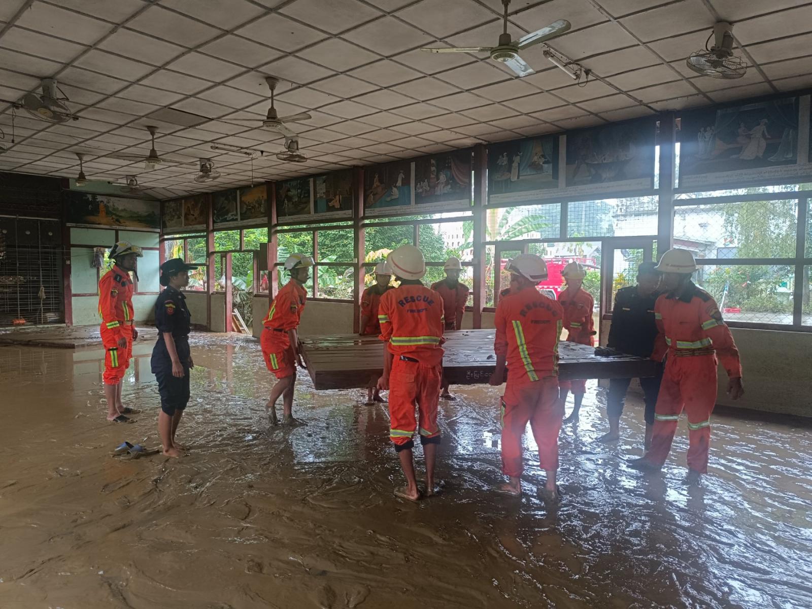 ကချင်ပြည်နယ်၊ ဗန်းမော်ခရိုင်၊ ဗန်းမော်မြို့တွင် ဧရာဝတီမြစ်ရေ ပြန်လည်ကျဆင်းသွားသောကြောင့် ဘုန်းတော်ကြီးကျောင်းများနှင့် အိမ်များတွင် ကျန်ရှိနေသော နုန်းမြေများ၊ အမှိုက်များ၊ ရွံ့စေးများကို ဗန်းမော်ခရိုင်မီးသတ်ဦးစီးဌာနမှ ယမန်နေ့နံနက် ၈ နာရီခွဲတွင် စုပေါင်းသန့်ရှင်းရေးပြုလုပ်ပေးခဲ့ကြောင်း သိရှိရသည်။