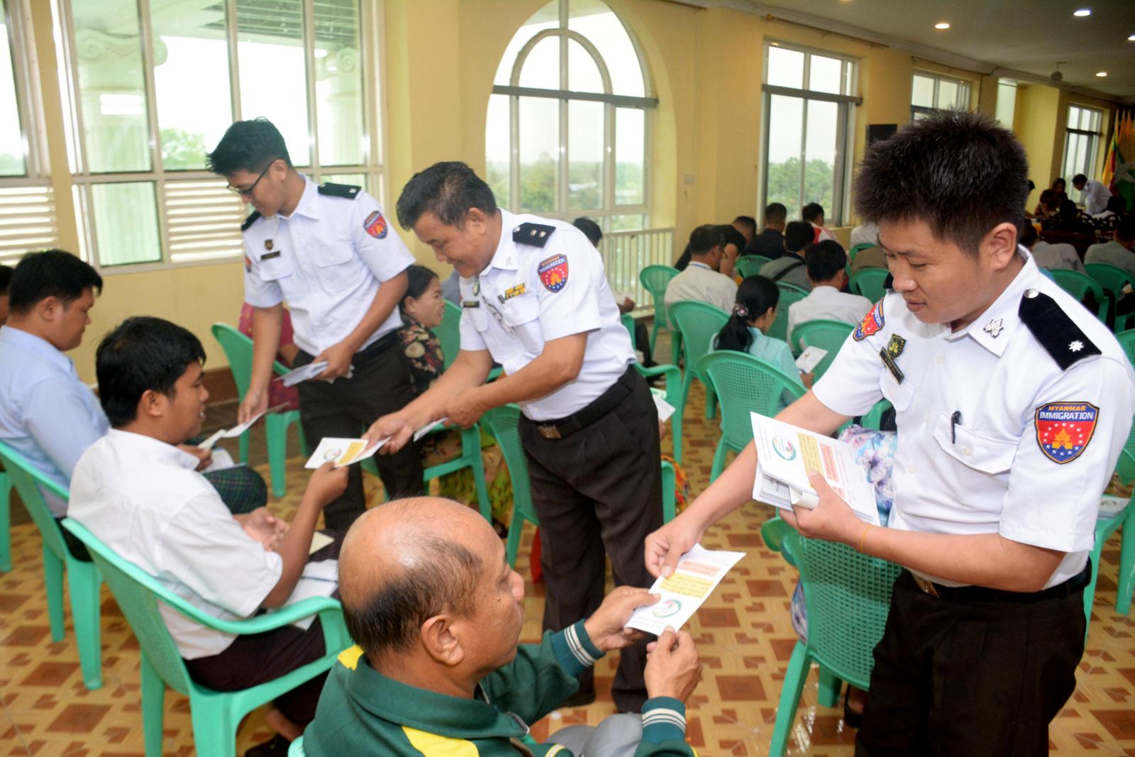 ထို့နောက် မြန်မာ၊ အင်္ဂလိပ်နှင့် တိုင်းရင်းသားဘာသာများဖြင့် ဗဟိုသန်းခေါင်စာရင်းကော်မရှင်မှ ထုတ်ဝေထားသည့် ပြည်သူအားလုံးပါဝင်လို့ သန်းခေါင်စာရင်းကောက်ကြစို့ အသိပညာပေး လက်ကမ်းစာစောင်များကို တက်ရောက်လာကြသူများအား ဖြန့်ဝေပေးခဲ့ကြောင်း သိရသည်။