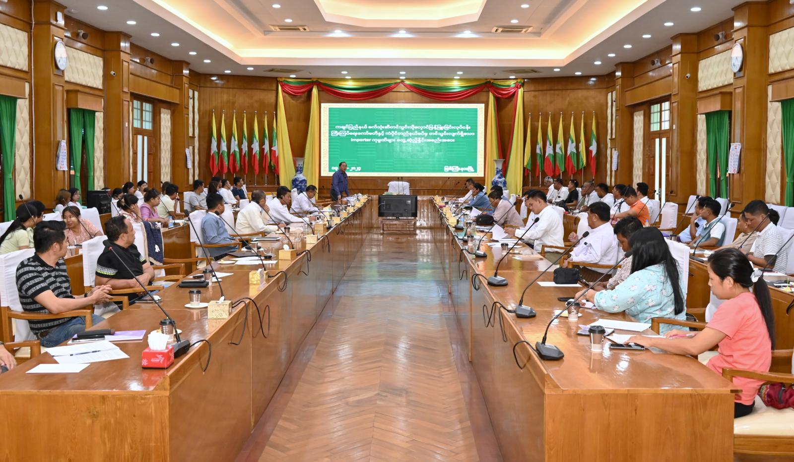 အဆိုပါ လုပ်ငန်းညှိနှိုင်းအစည်းအဝေးတွင် ပြည်နယ်စက်သုံးဆီတင်သွင်းသိုလှောင်ဖြန့်ဖြူး ခြင်းလုပ်ငန်းကြီးကြပ်ရေးကော်မတီဥက္ကဋ္ဌ၊ ပြည်နယ်အစိုးရအဖွဲ့ဝင် သယံဇာတရေးရာဝန်ကြီး ဦးတိန့်ဆောင်က နိုင်ငံတော်အနေဖြင့် ပြည်နယ်အတွင်းရှိ တိုင်းရင်းသားလုပ်ငန်းရှင်များကို ပင်လယ် ရပ်ခြားမှတစ်ဆင့် တင်သွင်းနေသည့် Importer လုပ်ငန်းရှင်များကဲ့သို့ ဆောင်ရွက်နိုင်ရေး၊ အလုပ် အကိုင်အခွင့်အလမ်းဆောင်ရွက်ပေးခဲ့ခြင်းပါကြောင်း၊ ထို့အပြင် ကံပိုင်တည်မှ တင်သွင်းပါက လမ်း ခရီးတိုတောင်းသက်သာစေပါကြောင်း၊ ယနေ့တင်သွင်းမည့်ကုမ္ပဏီများ အနေဖြင့် ပြည်နယ်အတွင်း စက်သုံးဆီပြတ်လပ်မှုမရှိစေရန် လအလိုက် သတ်မှတ်ထားသည့် Quota များကို ပြည့်ဝစွာ တင်သွင်း ရန်လိုအပ်ပါကြောင်း၊ ထို့အတူ တရားမဝင်တင်သွင်းမှုများကိုလည်း မိမိတို့ ပြည်နယ်အစိုးရအဖွဲ့ အနေဖြင့် အဆင့်ဆင့်စိစစ်၍ အရေးယူနိုင်ရေး ညွှန်ကြားထားပြီး ဖြစ်ပါကြောင်း တိုက်တွန်းမှာကြား သည်။