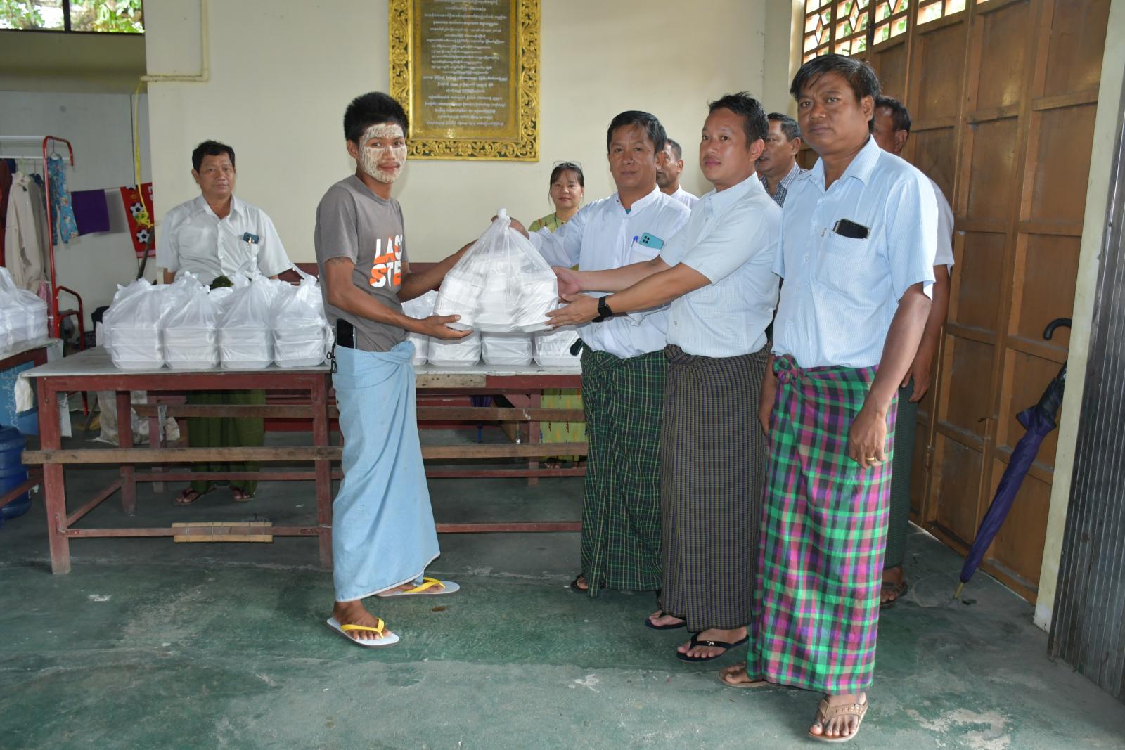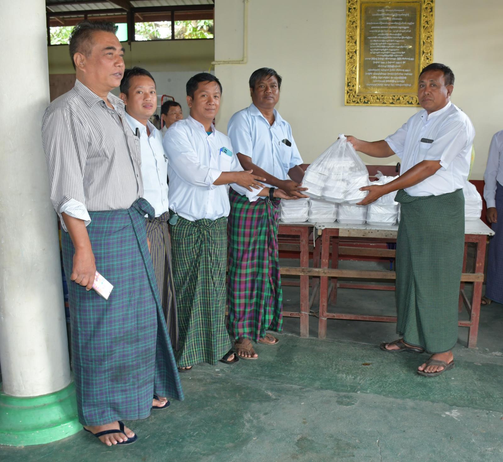 ကချင်ပြည်နယ်၊ ဗန်းမော်ခရိုင်၊ ဗန်းမော်မြို့ရှိ ရွှေတောင်တန်းဆီဆိုင်ပိုင်ရှင်နှင့် ဝန်ထမ်းများက ဗန်းမော်မြို့၊ မင်းကုန်းရပ်ကွက်ရှိ သိမ်တော်ကြီးဘုန်းတော်ကြီးကျောင်း၌ ရေဘေးကယ်ဆယ်ရေးစခန်းရှိ ရေဘေးသင့်ပြည်သူများအား ထမင်းဘူးများကို ယမန်နေ့နံနက် (၁၀) နာရီက လှူဒါန်းခဲ့ကြောင်း သိရှိရသည်။