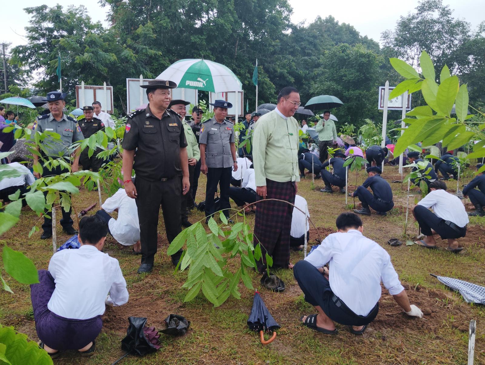 ထို့နောက် စုပေါင်းသစ်ပင်စိုက်ပျိုးရေးပွဲတော်သို့ တက်ရောက်လာကြသည့် ဗန်းမော်ခရိုင်နှင့် မြို့နယ်စီမံအုပ်ချူပ်ရေးဥက္ကဋ္ဌများနှင့် အဖွဲ့ဝင်များ၊ ဗန်းမော်ခရိုင်နှင့် မြို့နယ်သစ်တောဦးစီဌာနမှ ဝန်ထမ်းများ၊ အစိုးရနည်း ပညာအထက်တန်းကျောင်းမှ ကျောင်းအုပ်ကြီးနှင့် ဆရာ/ဆရာမများ၊ ကျောင်းသူ/ကျောင်းသားများ၊ မြန်မာနိုင်ငံရဲတပ်ဖွဲ့ဝင်များနှင့် ဌာနဆိုင်ရာဝန်ထမ်းများက ကျွန်း(၆၀၀)ပင်၊ ပျဉ်းကတိုး(၂၀၀)ပင်၊ ခရေ (၁၃၀)ပင်၊ မဟော်ဂနီ (၃၅)ပင်၊ ပိတောက် (၃၅)ပင်၊ တမလန်း (၂၅၀)ပင်နှင့် ကညင် (၂၅၀)ပင်စသည့် စုစုပေါင်းပျိုးပင် (၁၅၀၀)ပင်တို့ကို သတ်မှတ်နေရာအသီးသီး၌ တပျော်တပါး စုပေါင်းစိုက်ပျိုးခဲ့ကြကြောင်း သိရှိရပါသည်။