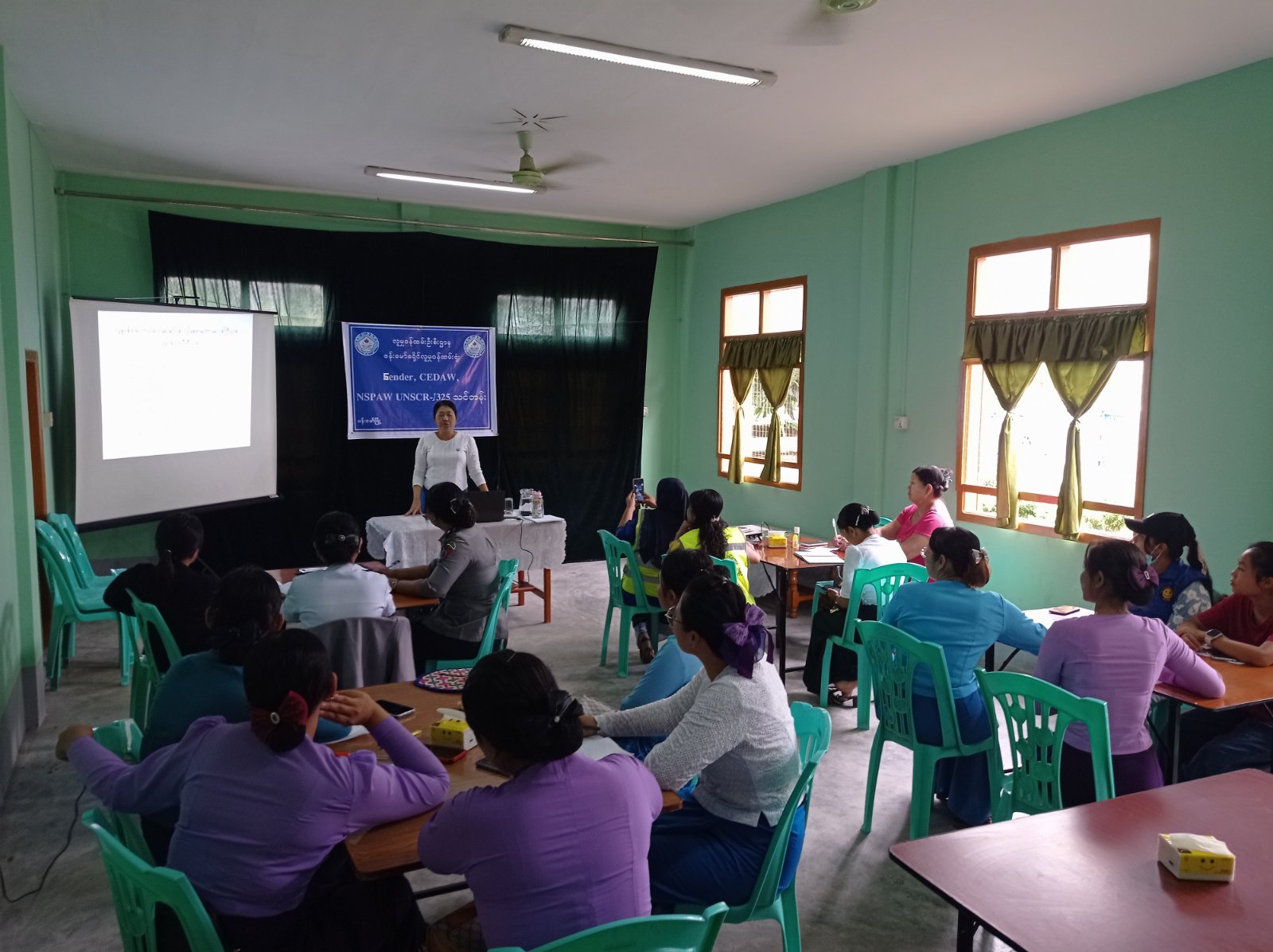 ကချင်ပြည်နယ်၊ ဗန်းမော်ခရိုင် လူမှုဝန်ထမ်းဦးစီးဌာန လူမှုဝန်ထမ်းရုံးခန်းမတွင် GENDER, CEDAW, NSPAW UNSCR -1325 အသိပညာပေးသင်တန်းကို ယနေ့နံနက် ၁၀ နာရီက ဖွင့်လှစ်ခဲ့ကြောင်း သိရှိရသည်။