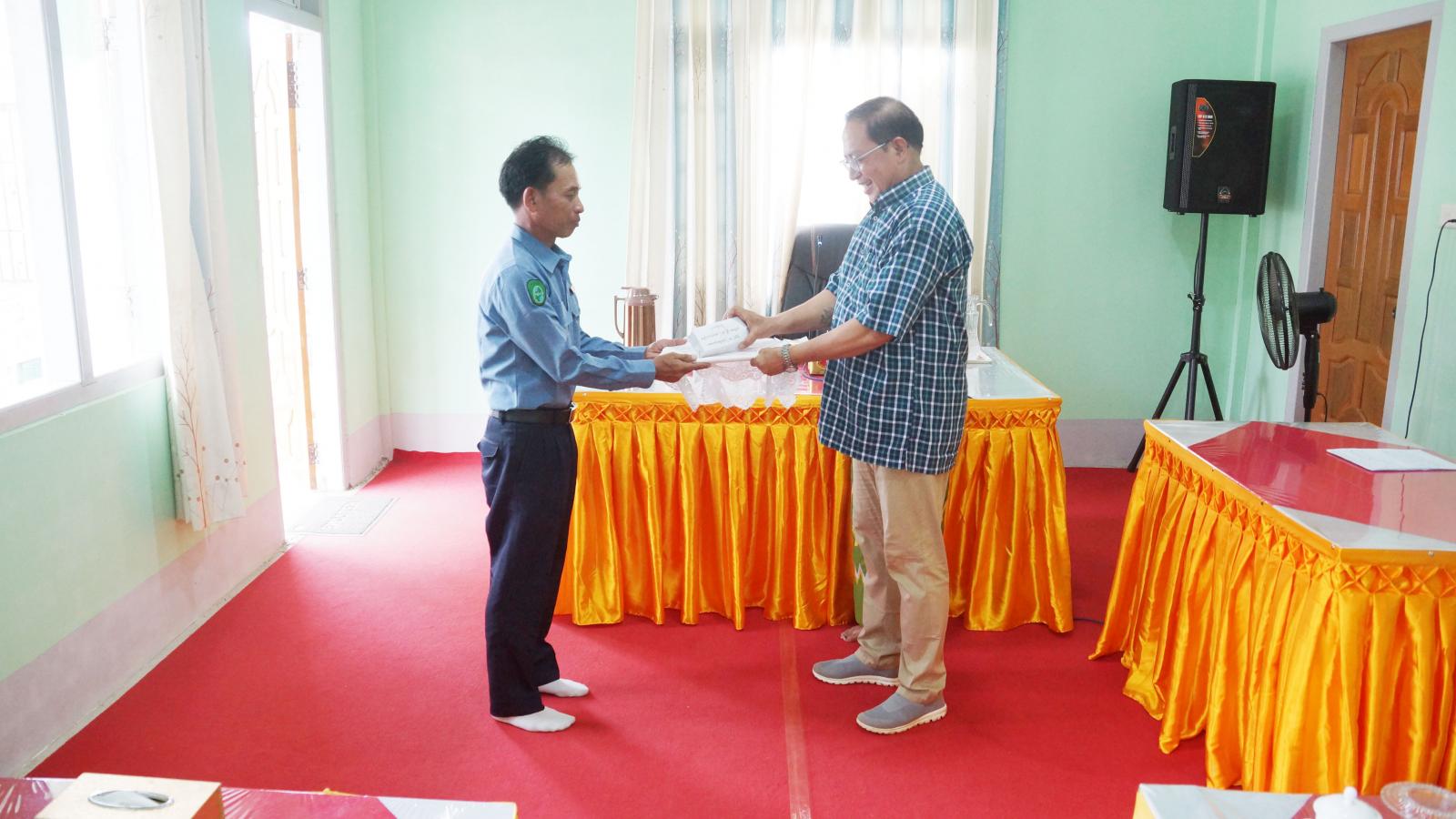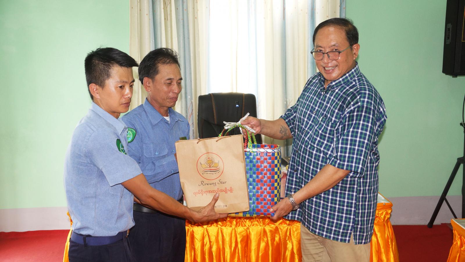 ထို့နောက် ပြည်နယ်ဝန်ကြီးက ပူတာအိုခရိုင်အတွင်းရှိ ပူတာအို၊ မချမ်းဘော၊ နောင်မွန်း၊ ခေါင်လန်ဖူး၊ ပန်နန်းဒင်မြို့နယ်ရုံးနှင့် မြို့ရုံးများတွင် တာဝန်ထမ်းဆောင်နေသော ဝန်ထမ်း(၃၀)ဦးအတွက် တစ်ဦးလျှင် တစ်သိန်းနှုန်းဖြင့် ကျပ်သိန်း သုံးဆယ်ကို ထောက်ပံ့ပေးအပ်ရာ ပူတာအိုမြို့နယ် စည်ပင်သာယာရေးအဖွဲ့ အမှုဆောင်အရာရှိနှင့်တာဝန်ရှိသူများက လက်ခံရယူကြသည်။