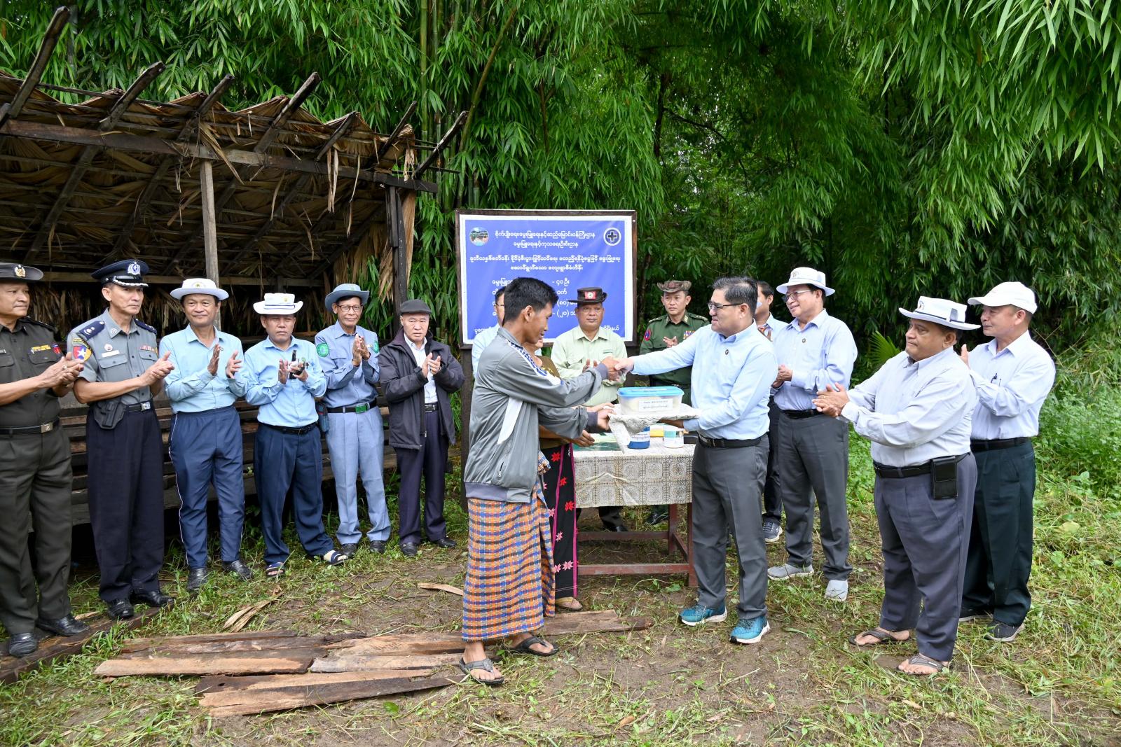ယင်းနောက်ပြည်နယ်ဝန်ကြီးချုပ်နှင့် အဖွဲ့ဝင်များသည် ပူတာအိုမြို့၊ လုံးစွတ်ရပ်ကွက်အတွင်းရှိ နိုင်ငံစီးပွားမြှင့်တင်ရေး ရန်ပုံငွေဖြင့် ဒေသတွင်း အဦးဆုံးထည်ထောင်ပေးခဲ့သော ဆန်းစိုက်ပျိုးရေးနှင့် အထွေထွေသမဝါယမအသင်းလီမိတက်ပိုင် ဆန်း ဆန်စက်ရုံသို့သွားရောက်ပြီး ပူတာအိုဒေသနေပြည်သူများအား ထောက်ပံ့ပေးနိုင်ရေးအတွက် အသင်းဥက္ကဋ္ဌ မြို့မိမြို့ဖ ဦးရယ်ဒမ်းတန်က ပြည်နယ်အစိုးရအဖွဲ့ထံ ဆန်အိတ်(၅၀) လှူဒါန်းမှုကို ပြည်နယ်ဝန်ကြီးချုပ်က လက်ခံရယူခဲ့ကြောင်း သိရသည်။